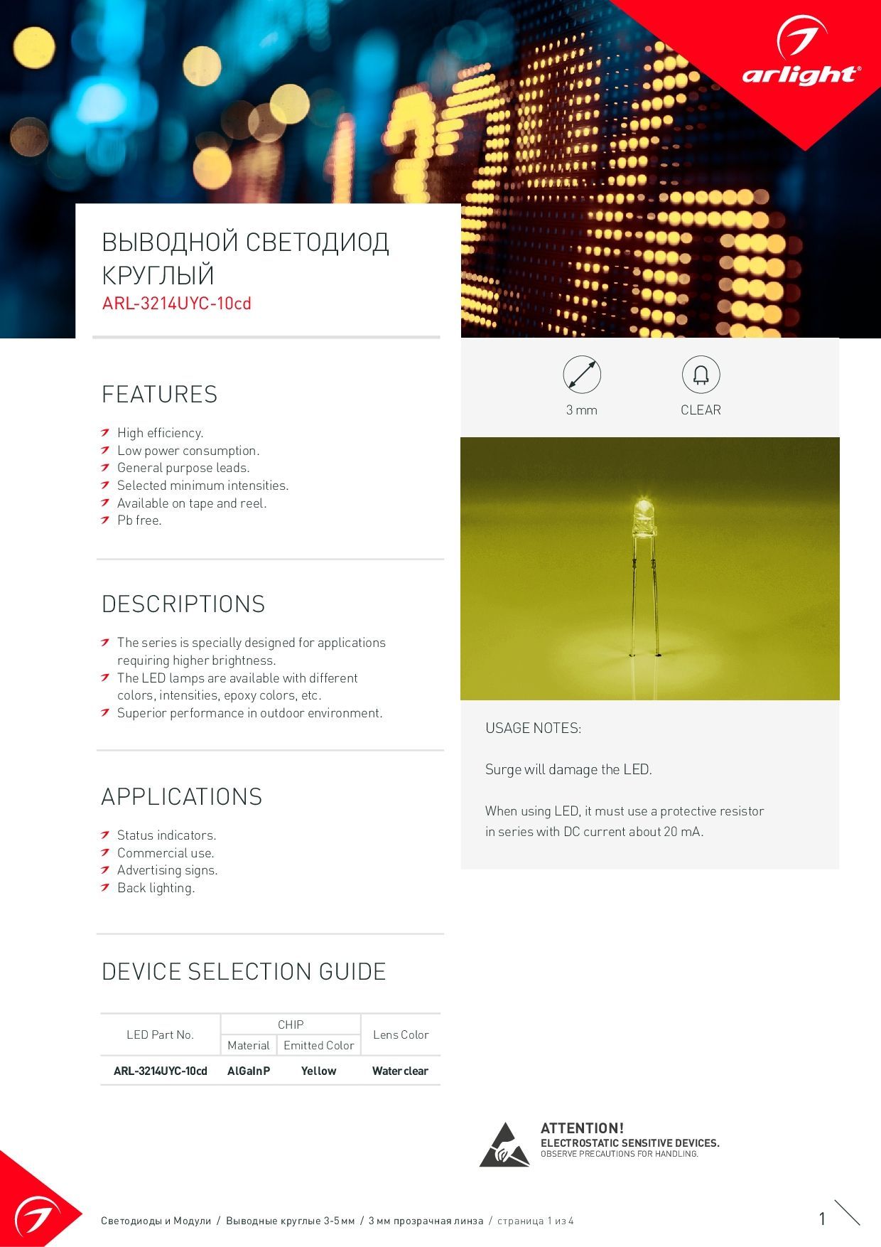 003308 Светодиод ARL-3214UYC-10cd (Arlight, 3мм (круглый))