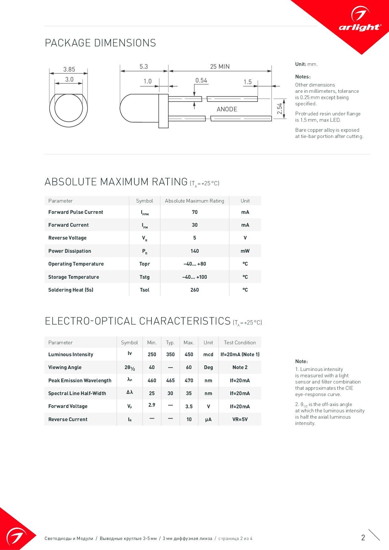 - Сила света min: 0.6 cd