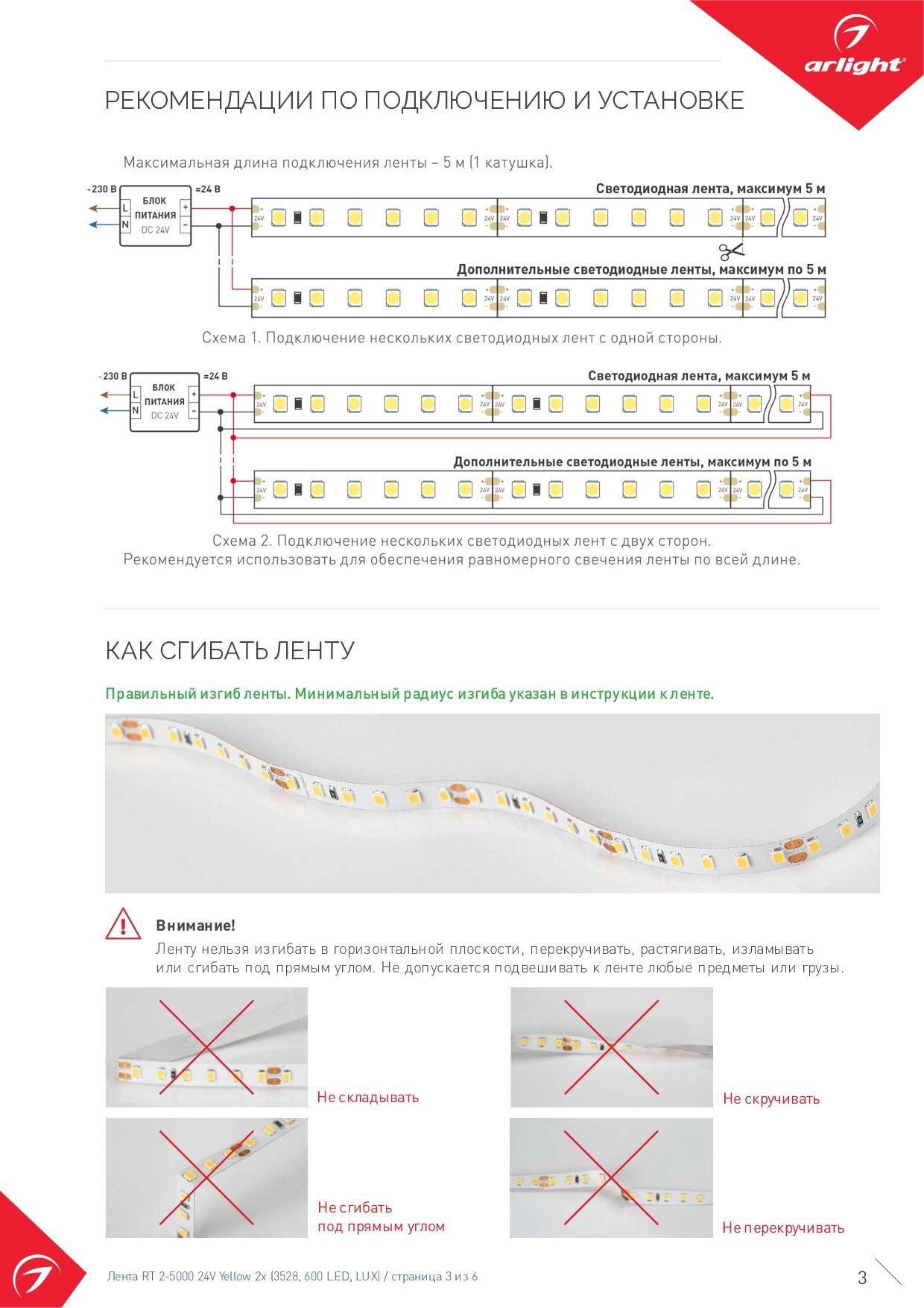 Светодиодная лента Arlight RT 2-5000 24V Yellow 2x (3528, 600 LED, LUX) (Arlight, 9.6 Вт/м, IP20) (Arlight 008780)
