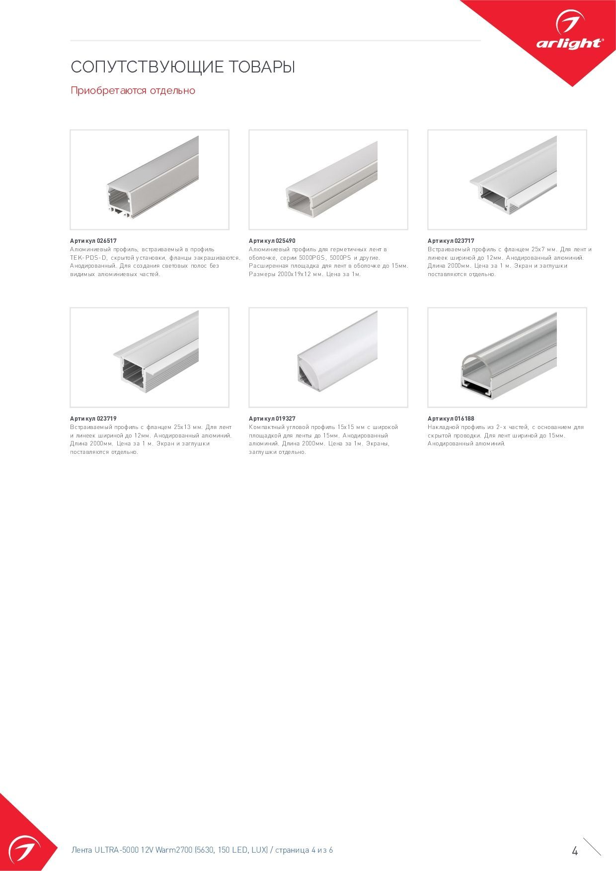 013854 Лента ULTRA-5000 12V Warm2700 (5630, 150 LED, LUX) (Arlight, 12 Вт/м, IP20)