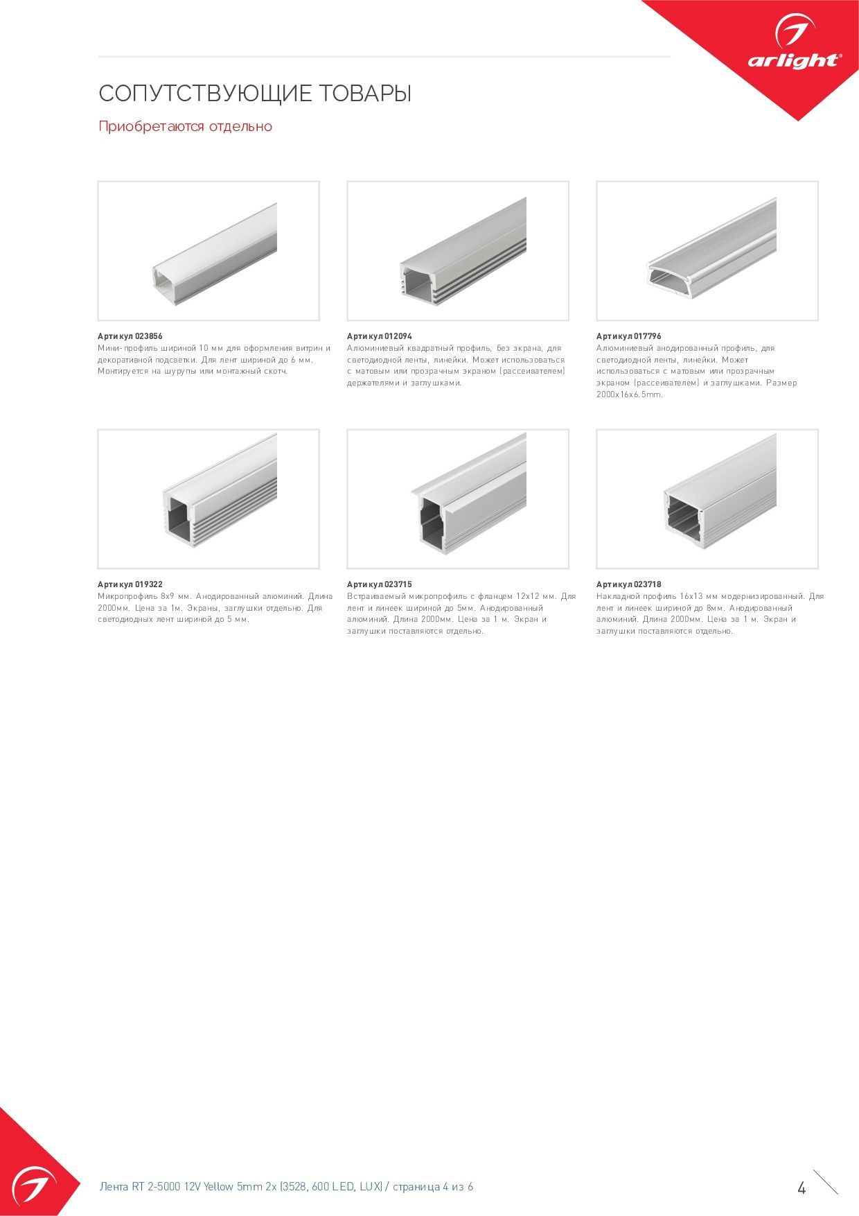 Светодиодная лента Arlight RT 2-5000 12V Yellow 5mm 2x (3528, 600 LED, LUX) (Arlight, 9.6 Вт/м, IP20) (Arlight 015006)