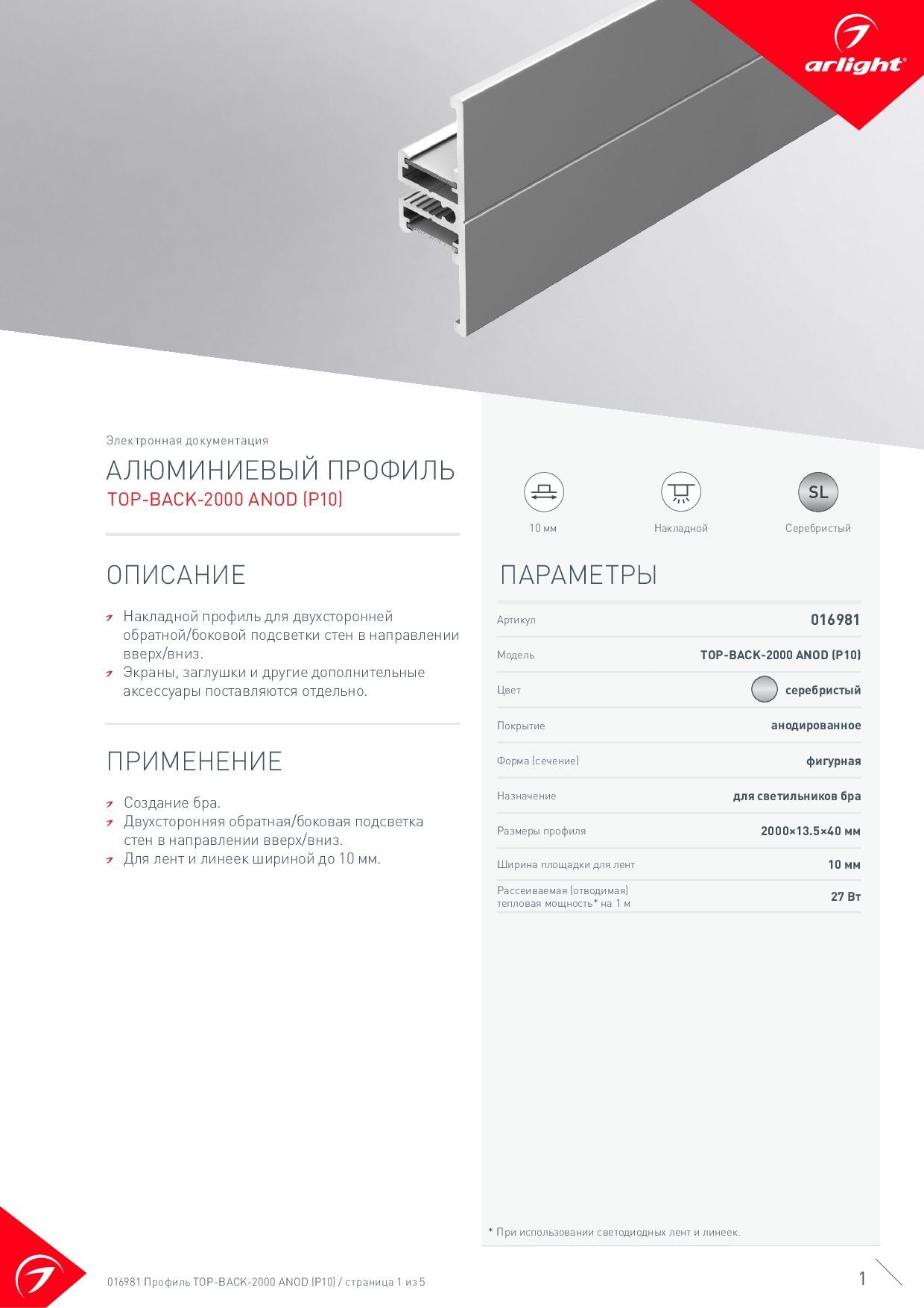 016981 Профиль TOP-BACK-2000 ANOD (P10) (Arlight, Алюминий)