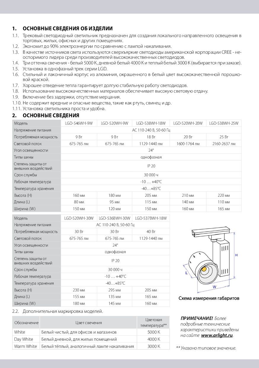 Светодиодный светильник LGD-538WH 18W Warm White (Arlight, IP20 Металл) Arlight 017688