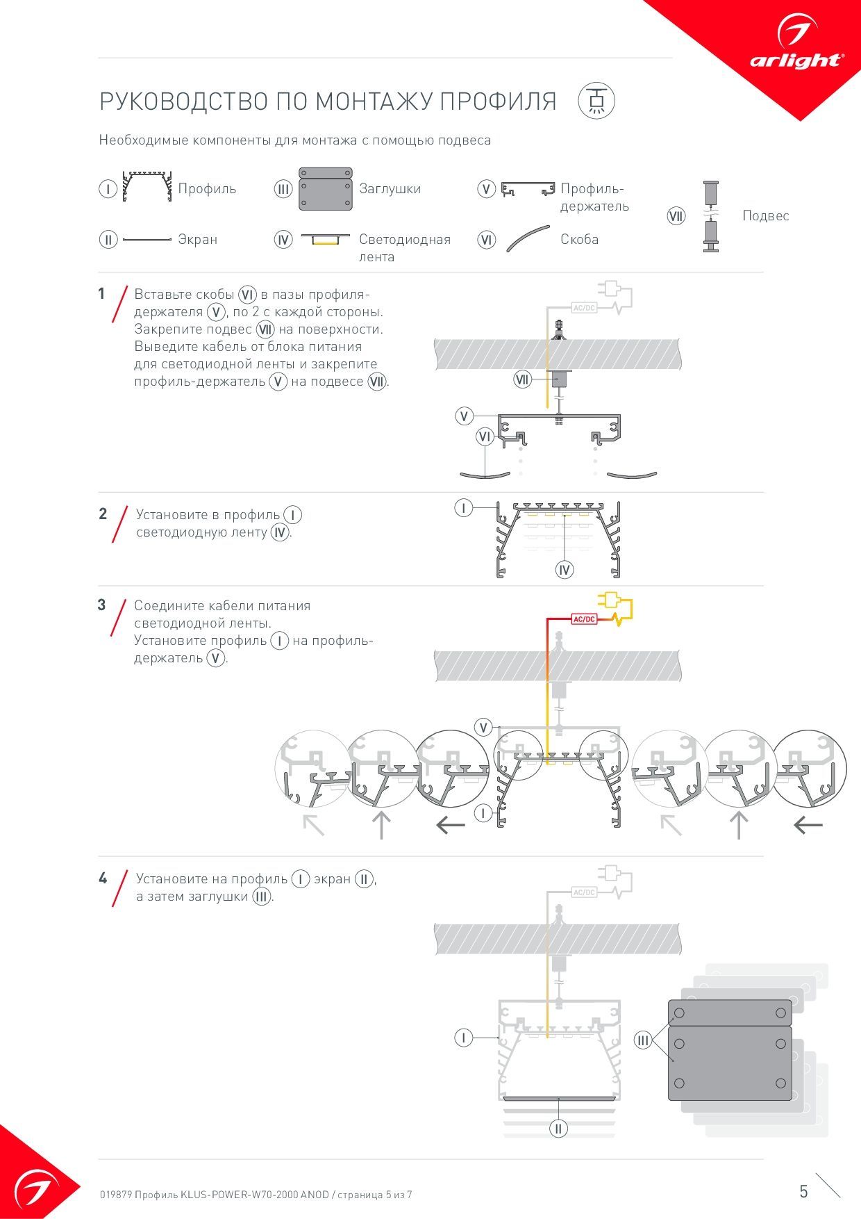 - Установите светодиодную ленту в профиль POWER-W70-BASE