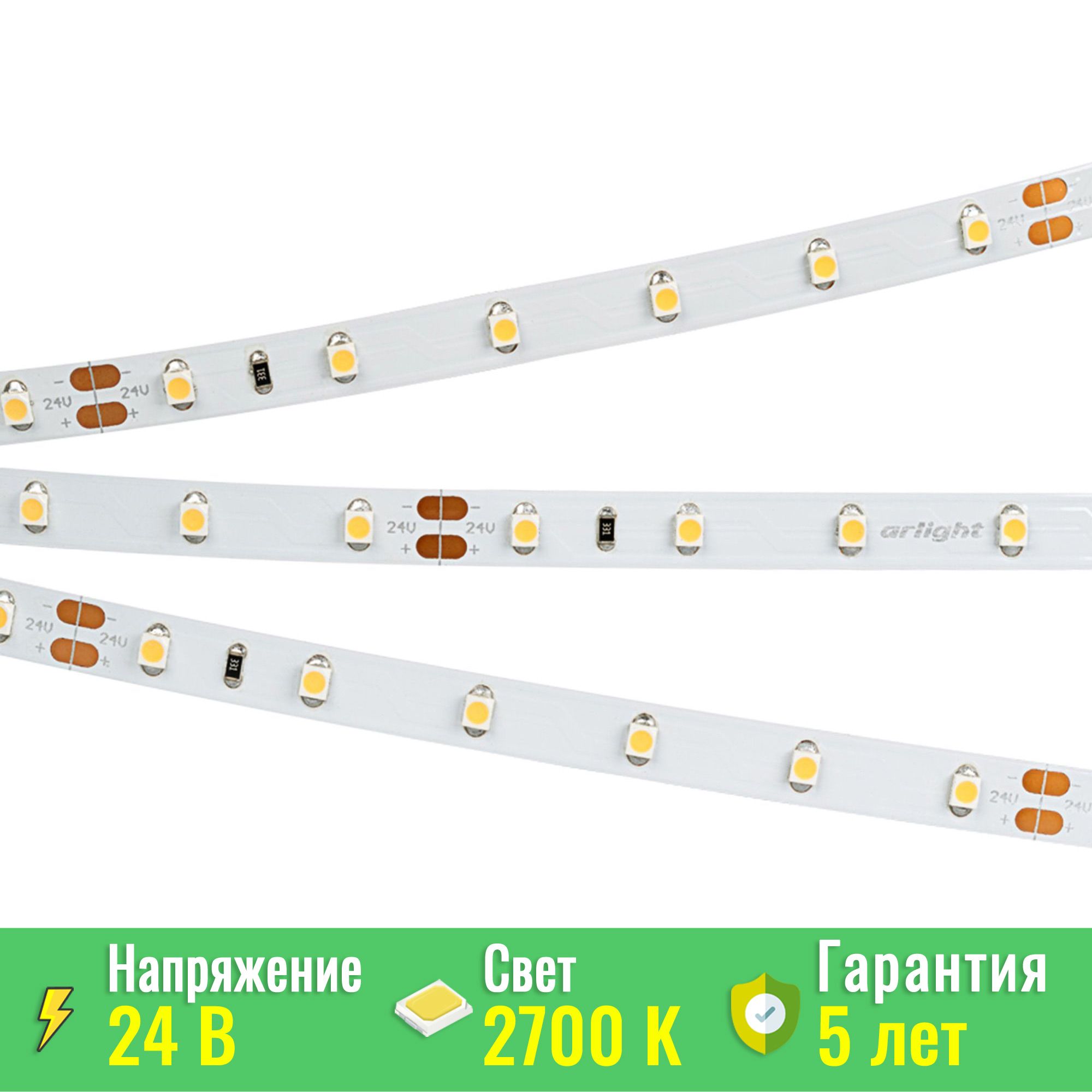 Светодиодная лента Arlight RT 2-5000 24V Warm2700 (3528, 300 LED, CRI98) (Arlight, 4.8 Вт/м, IP20) (Arlight 021414(1))