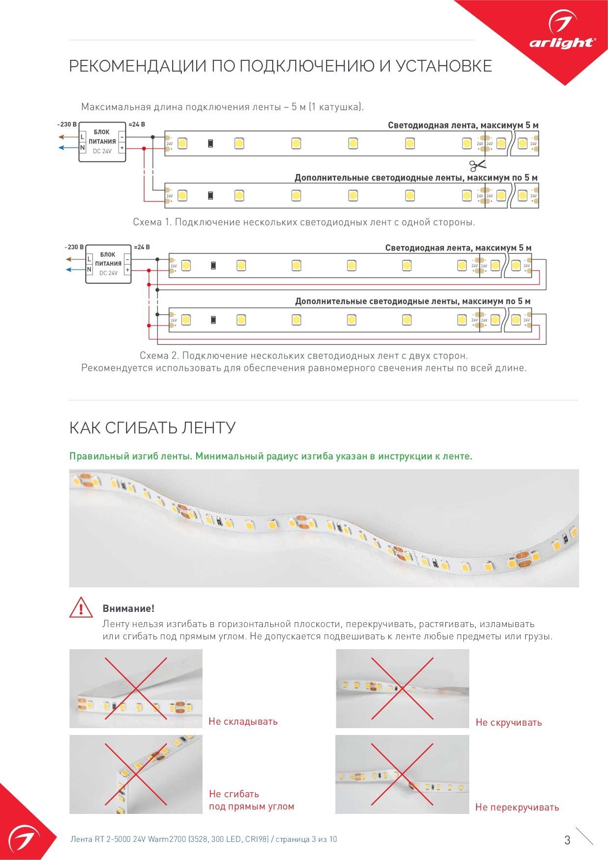 - Плотность светодиодов 60 шт/м