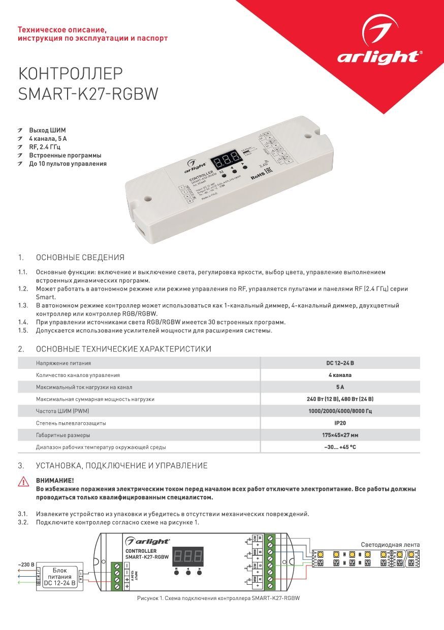 Выберите контроллер Arlight SMART-K27-RGBW для достижения качественного и надёжного управления вашим освещением. Это идеальное решение для тех, кто ценит комфорт, качество и стиль. Закажите прямо сейчас в нашем интернет-магазине 'Arlight.info'!