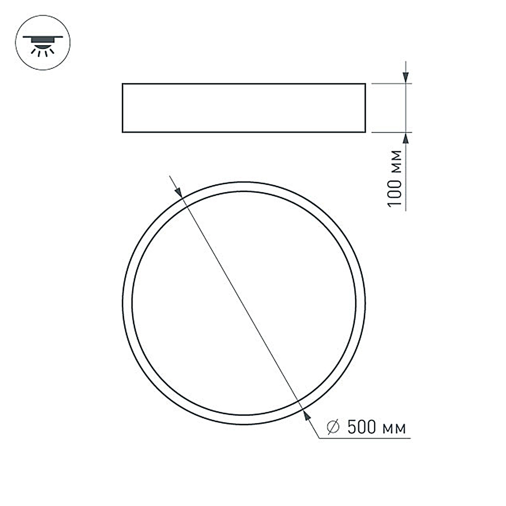Дизайн и материал. Светильник выполнен в стильном и лаконичном дизайне с круглым корпусом диаметром 500 мм и высотой 100 мм. Корпус изготовлен из металла с черным покрытием, что делает его подходящим для интерьеров в индустриальном или современном стиле. Призматический акриловый рассеиватель создает мягкое и равномерное распределение света по всей площади помещения.