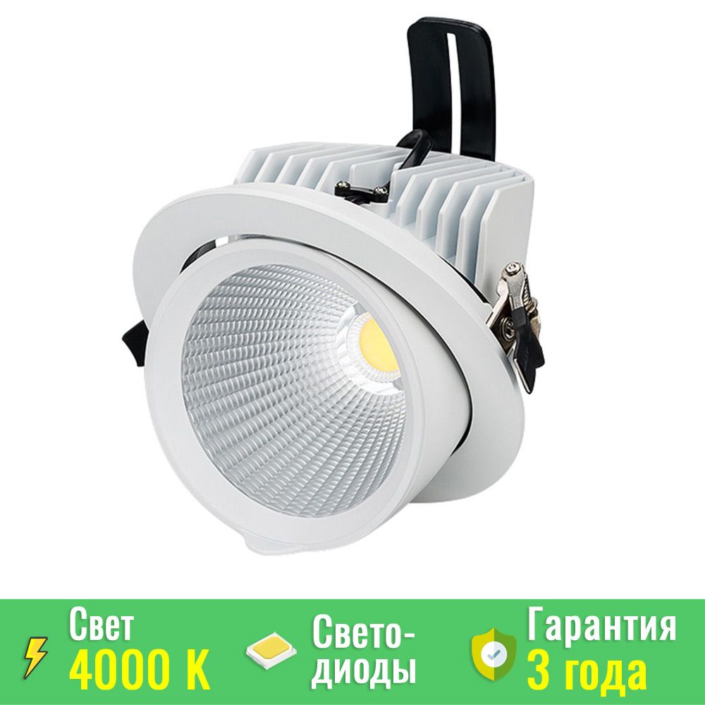 Благодаря встраиваемой конструкции и простоте монтажа с использованием пружин, светильник легко устанавливается в потолок, минимальный диаметр монтажного отверстия – 140 мм. В комплект уже включен драйвер напряжения 25,5-43 В с током 700 мА, отличающийся пульсацией менее 3%, что устраняет риск мерцания. При необходимости, драйвер можно заменить для возможности диммирования, что позволяет регулировать яркость освещения по вашему усмотрению.