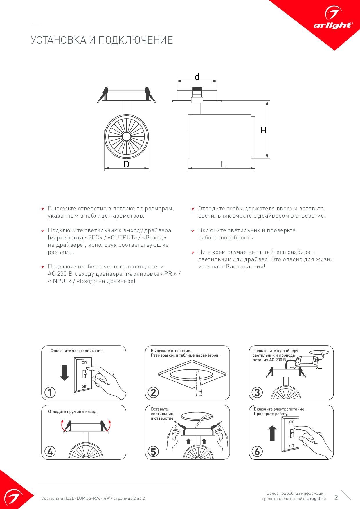 Приобретая этот светильник в магазине 'Arlight.info', вы получаете не только высококачественное световое оборудование, но и уверенность в его долговечной и надежной работе, подкрепленную официальной гарантией производителя.