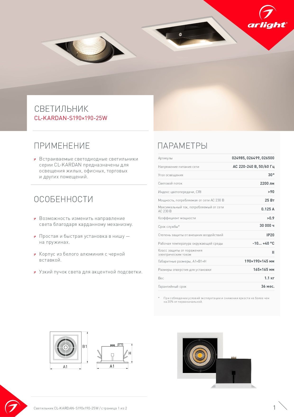 Светильник CL-KARDAN-S190x190-25W White6000 (WH-BK, 30 deg) (Arlight, IP20 Металл) Arlight 026500