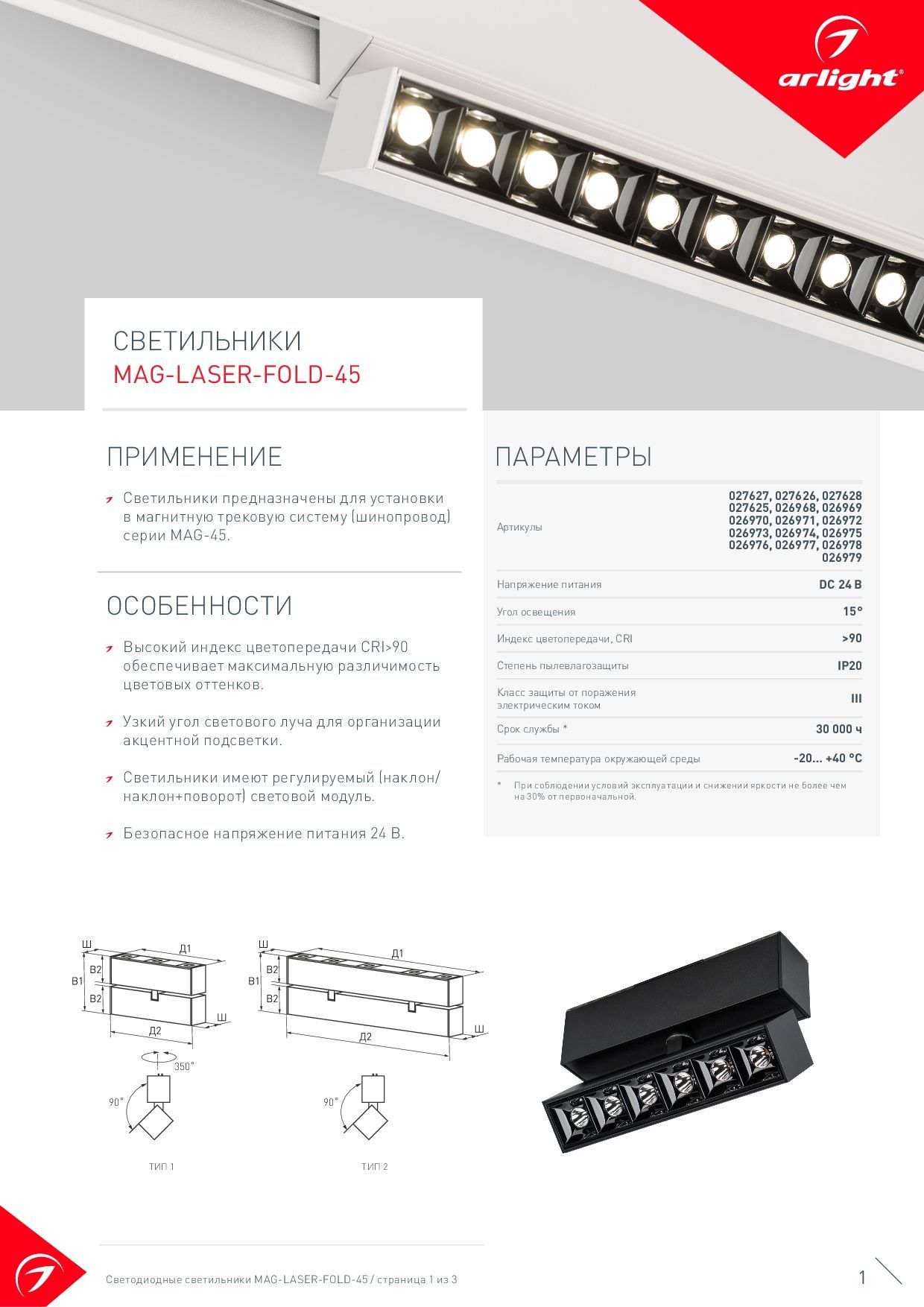 Светильник MAG-LASER-FOLD-45-S160-6W Warm3000 (BK, 15 deg, 24V) (Arlight, IP20 Металл) Arlight 026970