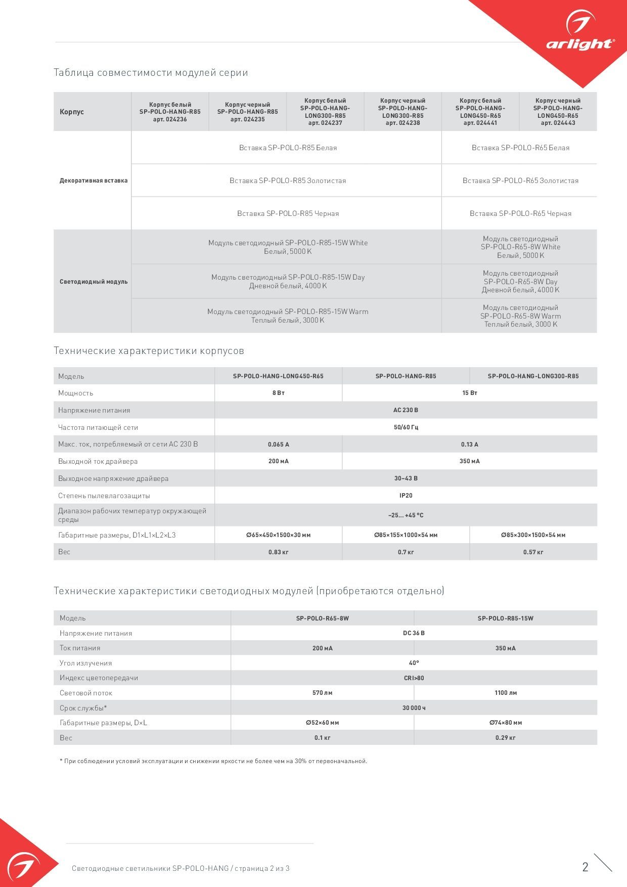 Светильник SP-POLO-HANG-LONG450-R65-8W Day4000 (WH-BK, 40 deg) (Arlight, IP20 Металл) Arlight 027357