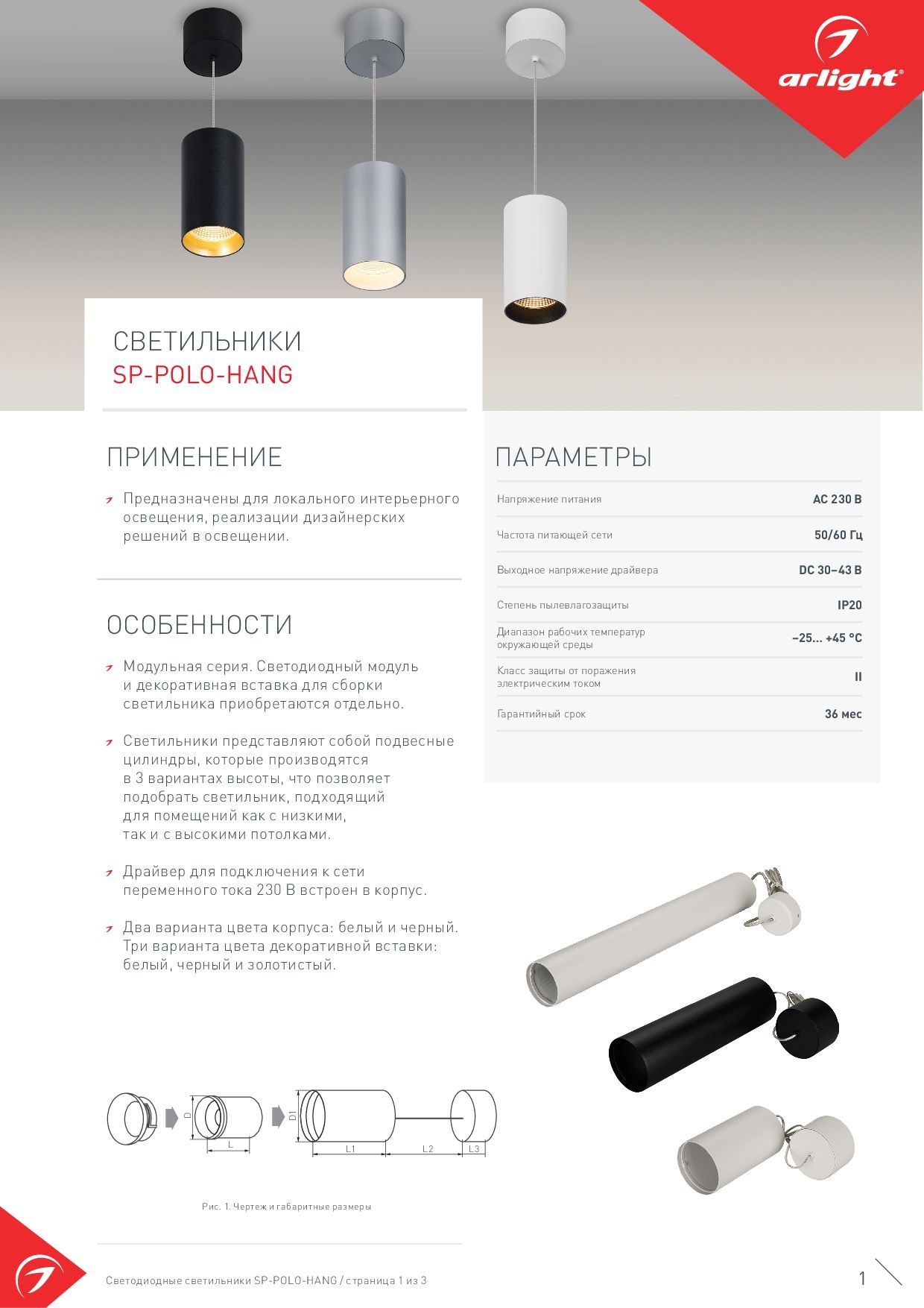 Светильник SP-POLO-HANG-R85-15W White5000 (BK-WH, 40 deg) (Arlight, IP20 Металл) Arlight 027423