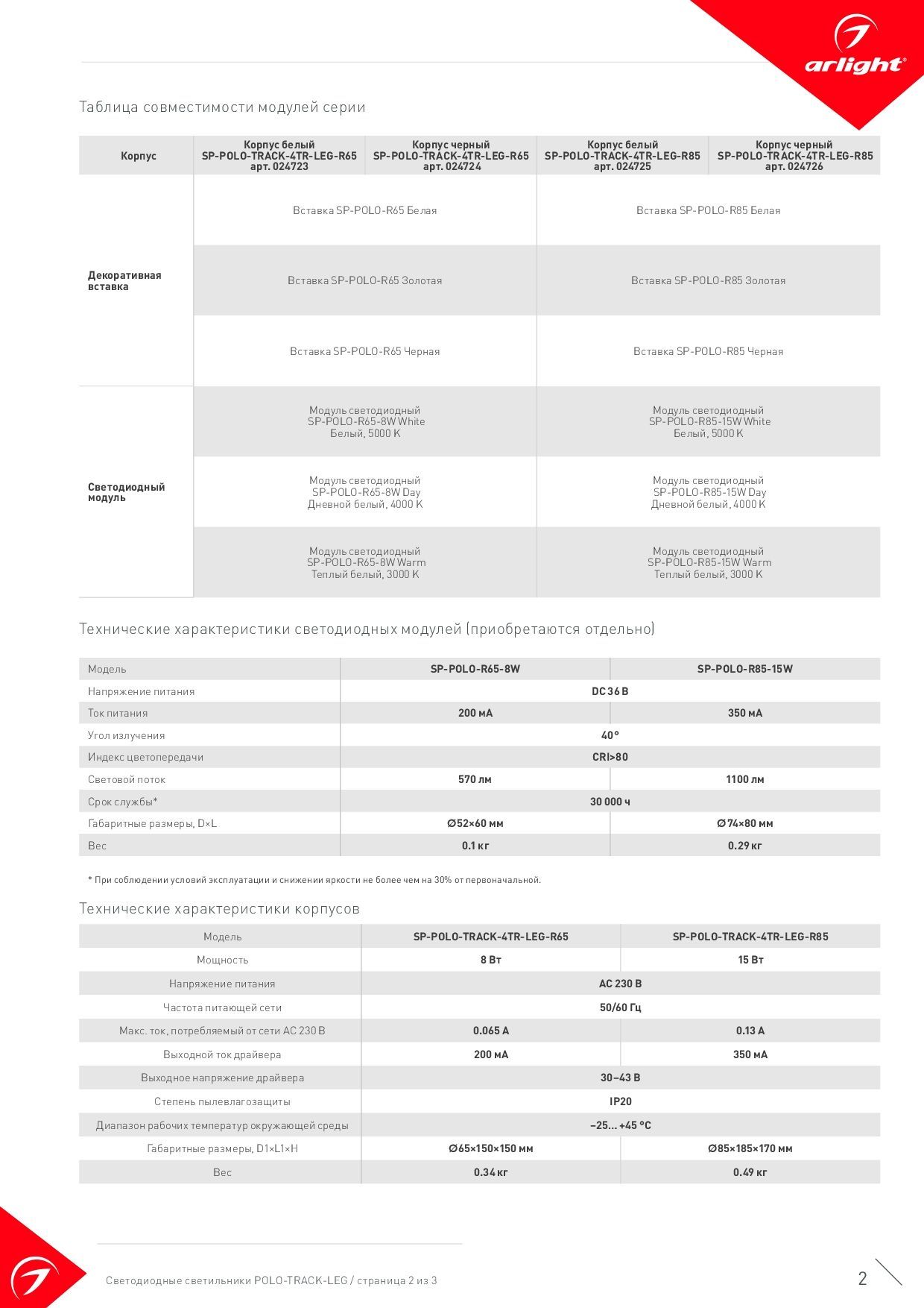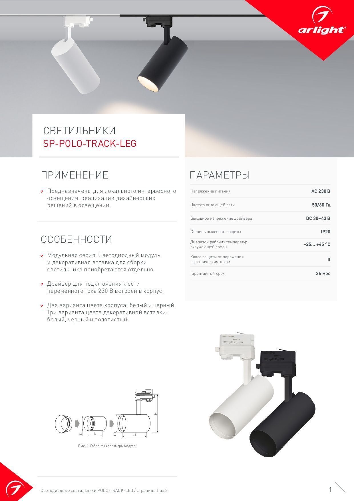Светильник SP-POLO-TRACK-LEG-R85-15W Day4000 (BK-WH, 40 deg) (Arlight, IP20 Металл) Arlight 027447