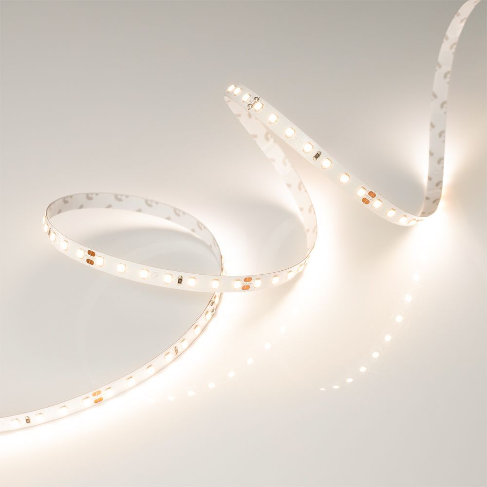 Светодиодная лента Arlight излучает теплый свет с цветовой температурой 2700 Кельвинов. Это придаёт помещению уютное и комфортное освещение, что особенно актуально для жилых зон и детских комнат. Угол рассеивания света составляет 120 градусов, что позволяет равномерно освещать большую площадь.