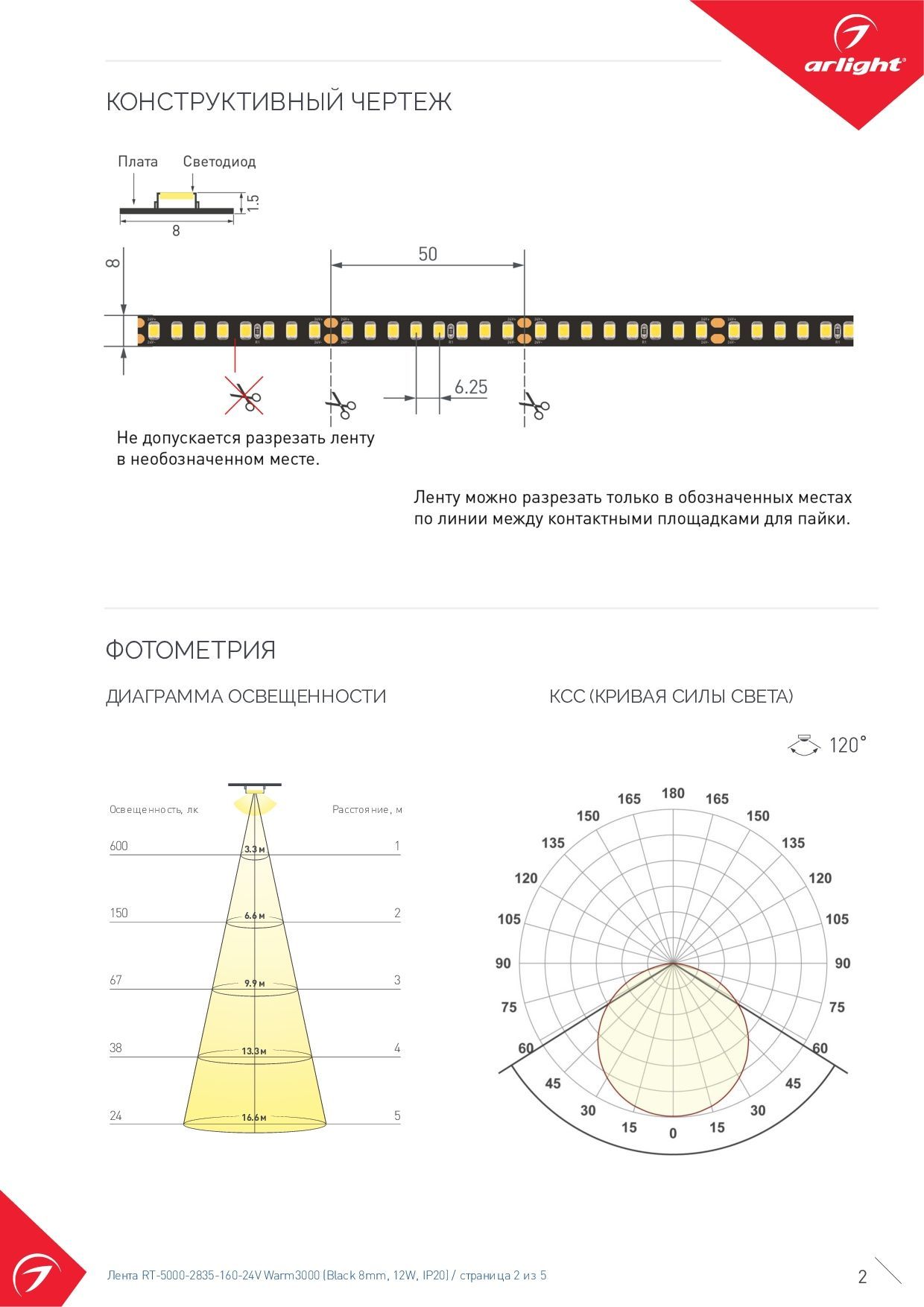 Светодиодная лента Arlight RT-5000-2835-160-24V Warm3000 (Black 8mm, 12W, IP20) (Arlight, -) (Arlight 029426)