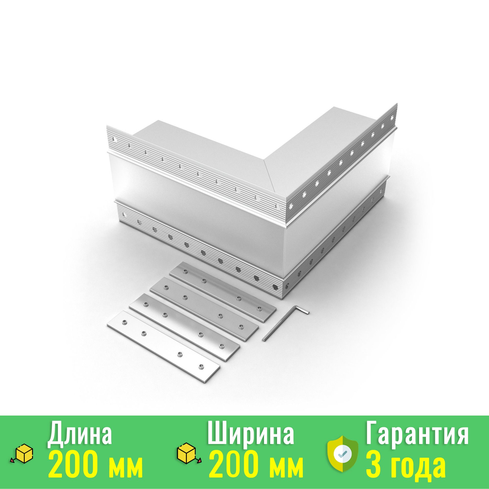 Комплект включает в себя сам угол с экраном, соединительные элементы, винты и шестигранный ключ для удобства сборки. Это значительно облегчает процесс установки профилей, позволяя экономить время и усилия как профессиональным мастерам, так и новичкам в монтаже световых систем.