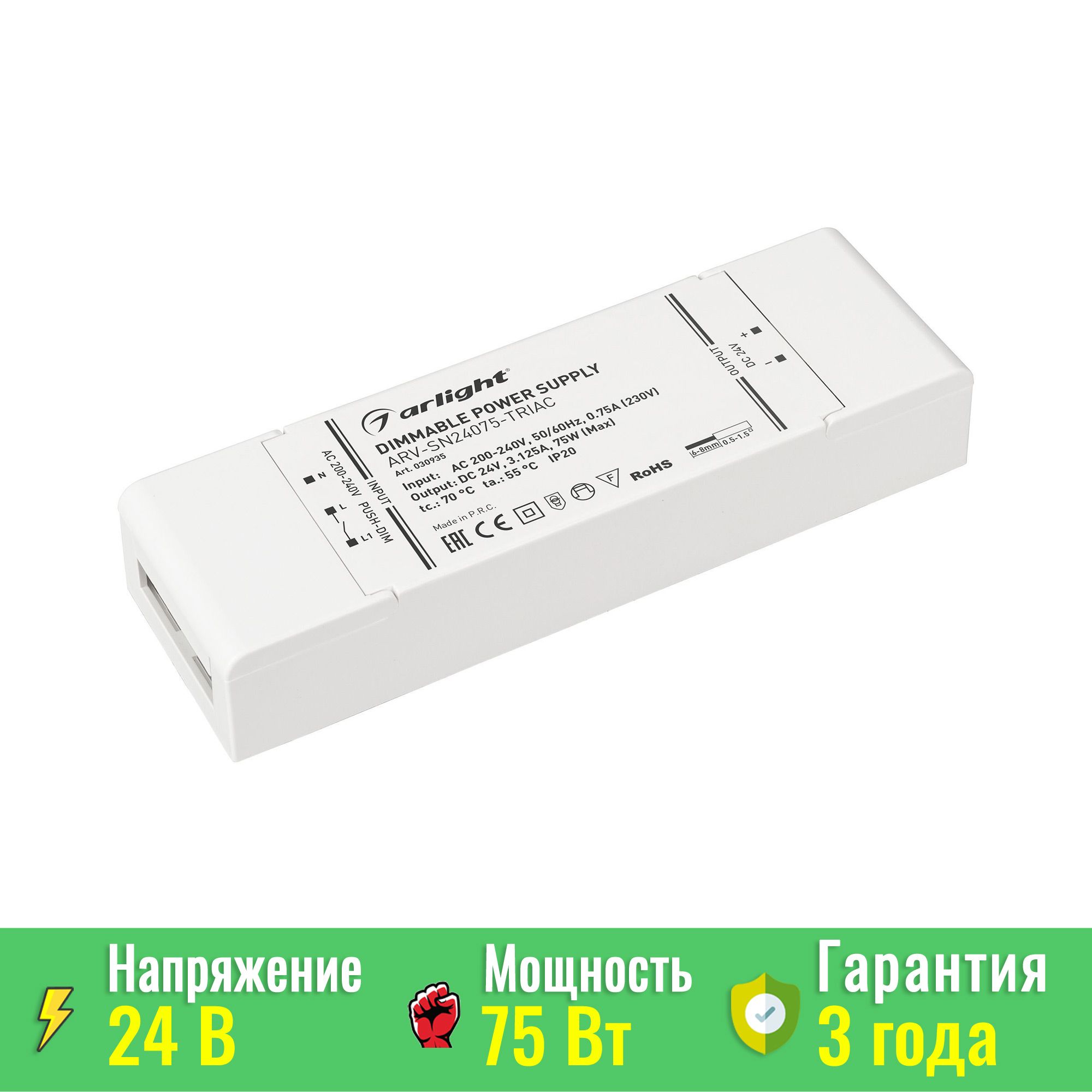 Блок питания ARV-SN24075-TRIAC (24V, 3.125A, 75W) (Arlight, IP20 Пластик) Arlight 030935