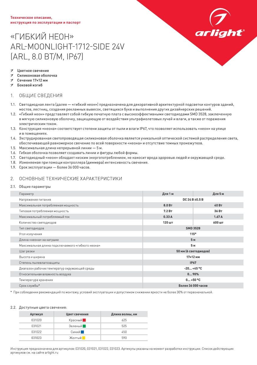Технические данные Arlight 031020