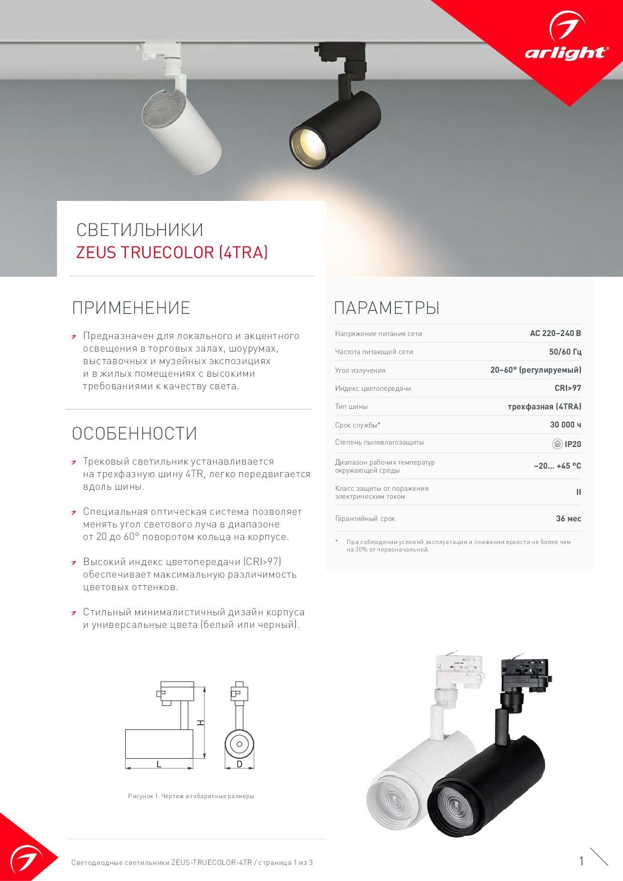 Светильник LGD-ZEUS-TRUECOLOR-4TR-R100-30W Warm3000 CRI98 (WH, 20-60 deg, 230V) (Arlight, IP20 Металл) Arlight 031428