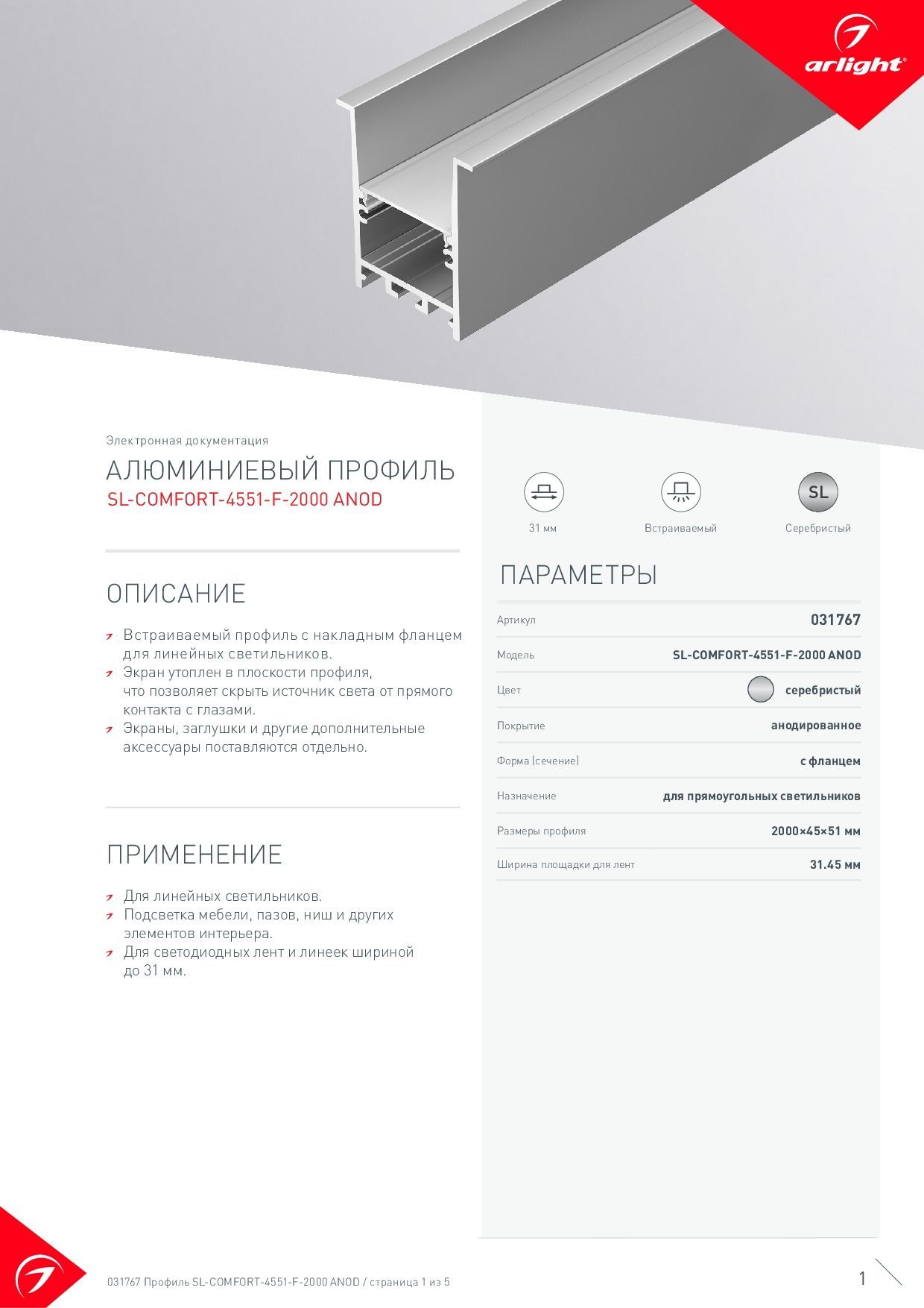 031767 Профиль SL-COMFORT-4551-F-2000 ANOD (Arlight, Алюминий)