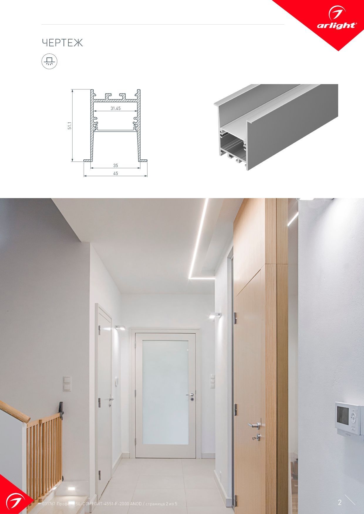 Алюминиевый анодированный профиль SL-COMFORT-4551-F-2000 от Arlight
