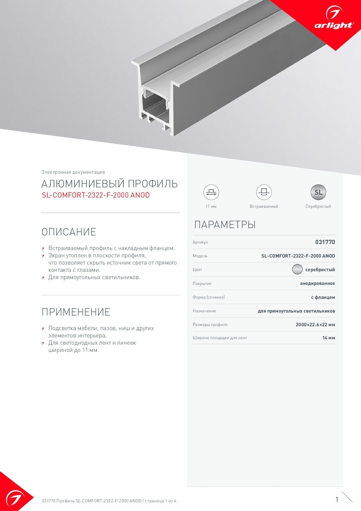 Профиль Arlight SL-COMFORT-2322-F-2000 ANOD: Эффективное решение для светодиодных проектов