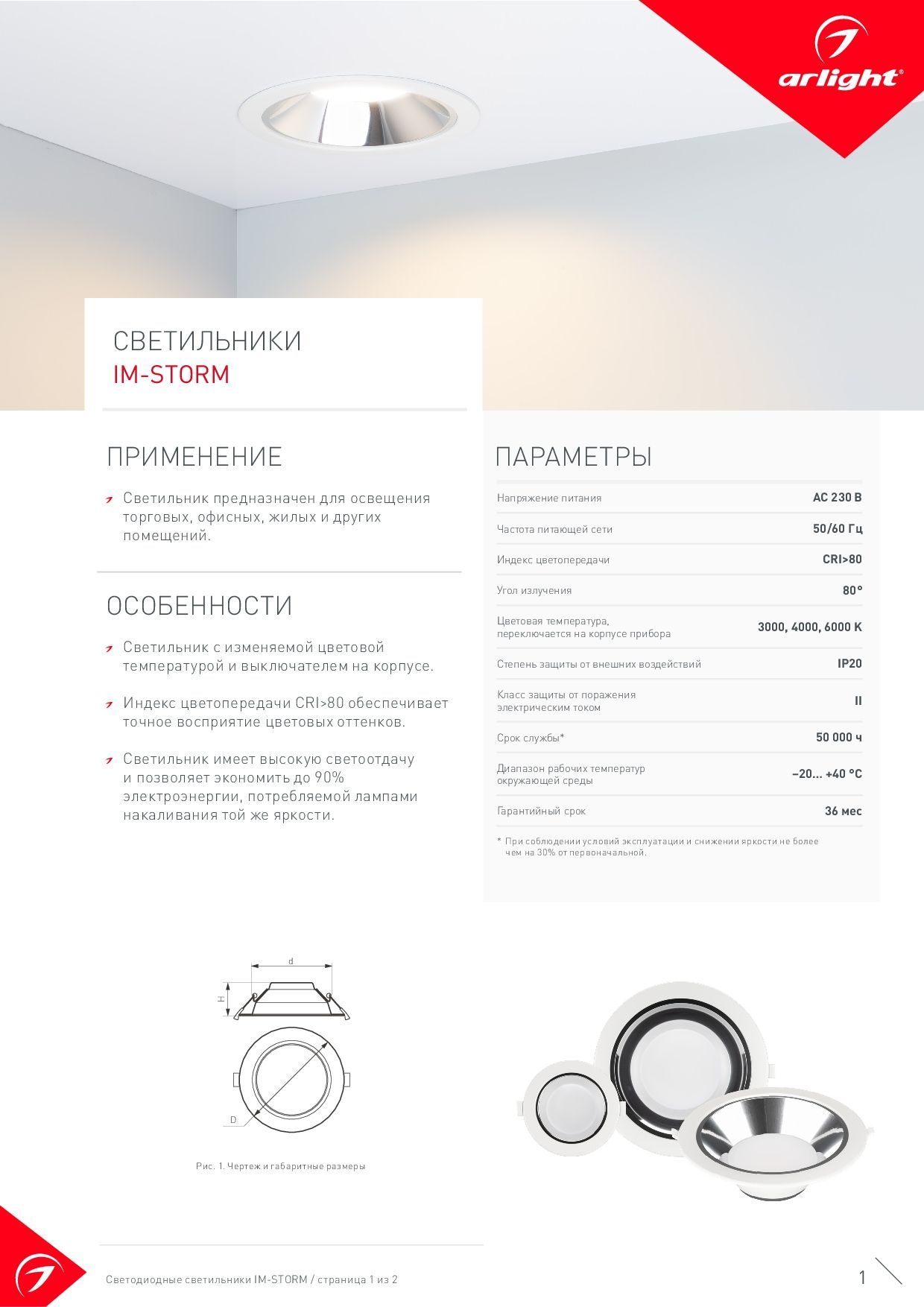 Светильник IM-STORM-R145-15W Day4000-MIX (WH, 80 deg, 230V) (Arlight, IP20 Металл) Arlight 032432