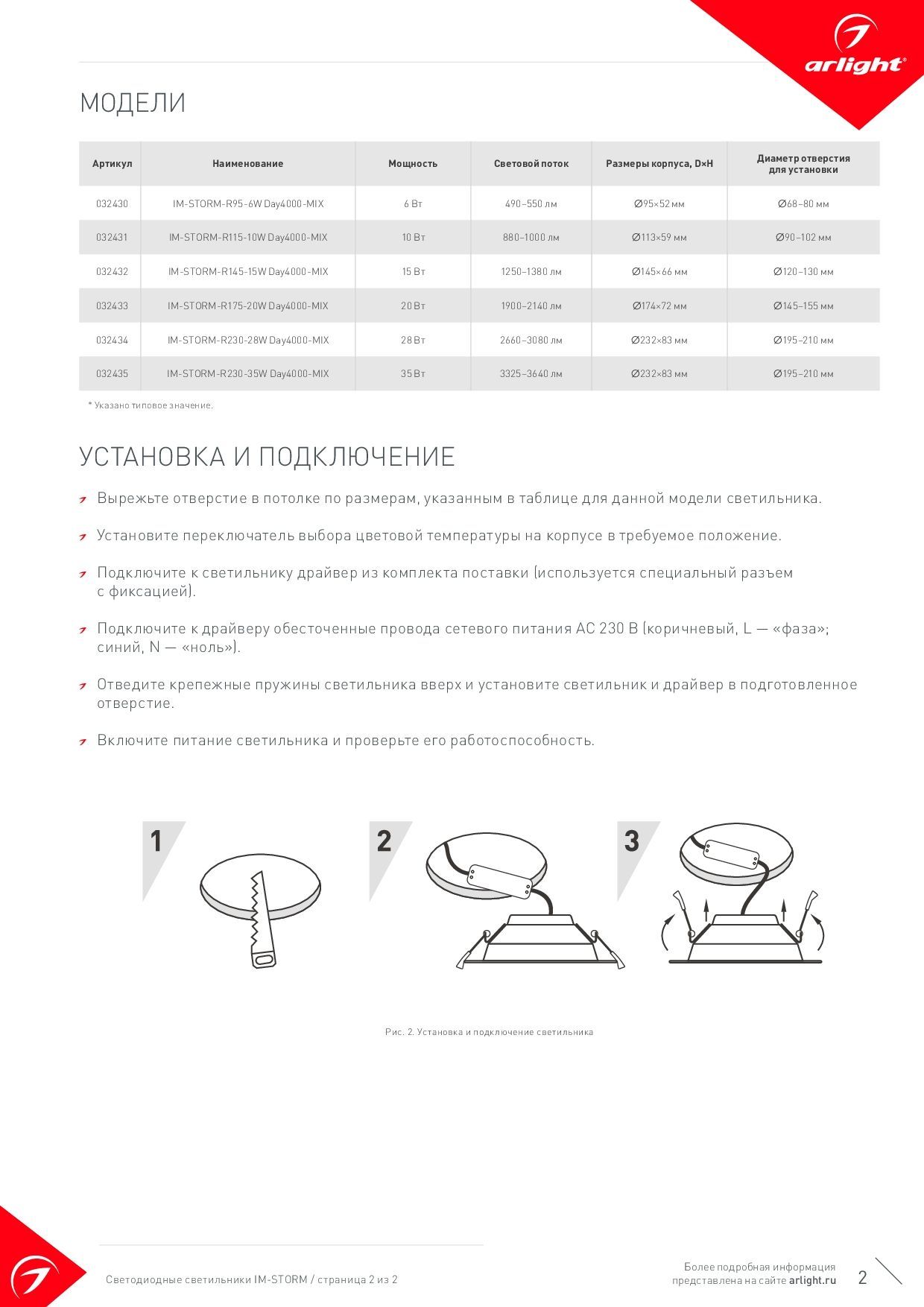 Светильник Arlight IM-STORM-R145-15W Day4000-MIX предназначен для встраиваемого монтажа в подвесные потолки или гипсокартонные конструкции. Установка выполняется в несколько простых шагов: