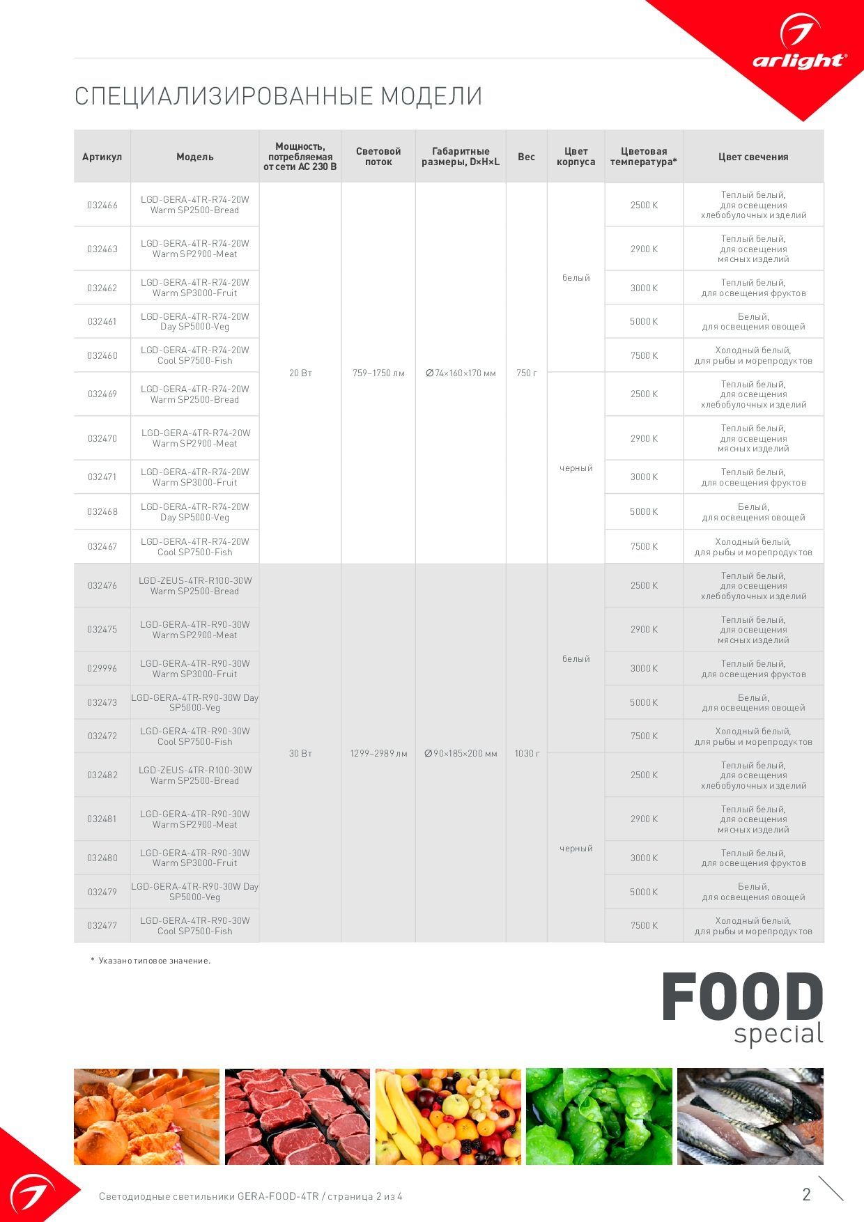 - Цветовая температура: Специально подобранный тёплый цвет свечения 3000 К идеально подходит для красных и жёлтых фруктов, овощей и других продуктов питания, делая их более привлекательными для покупателей.