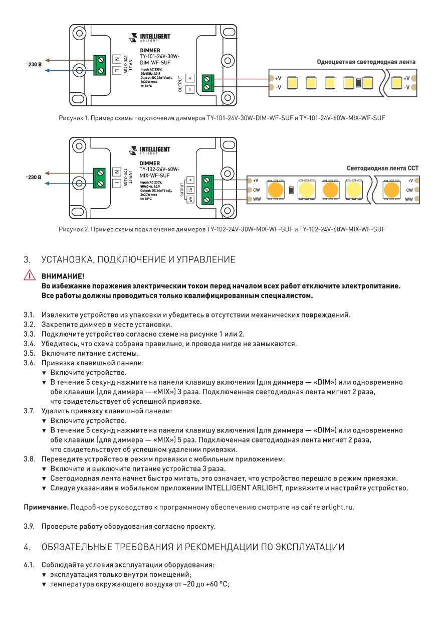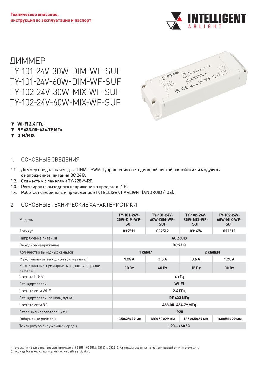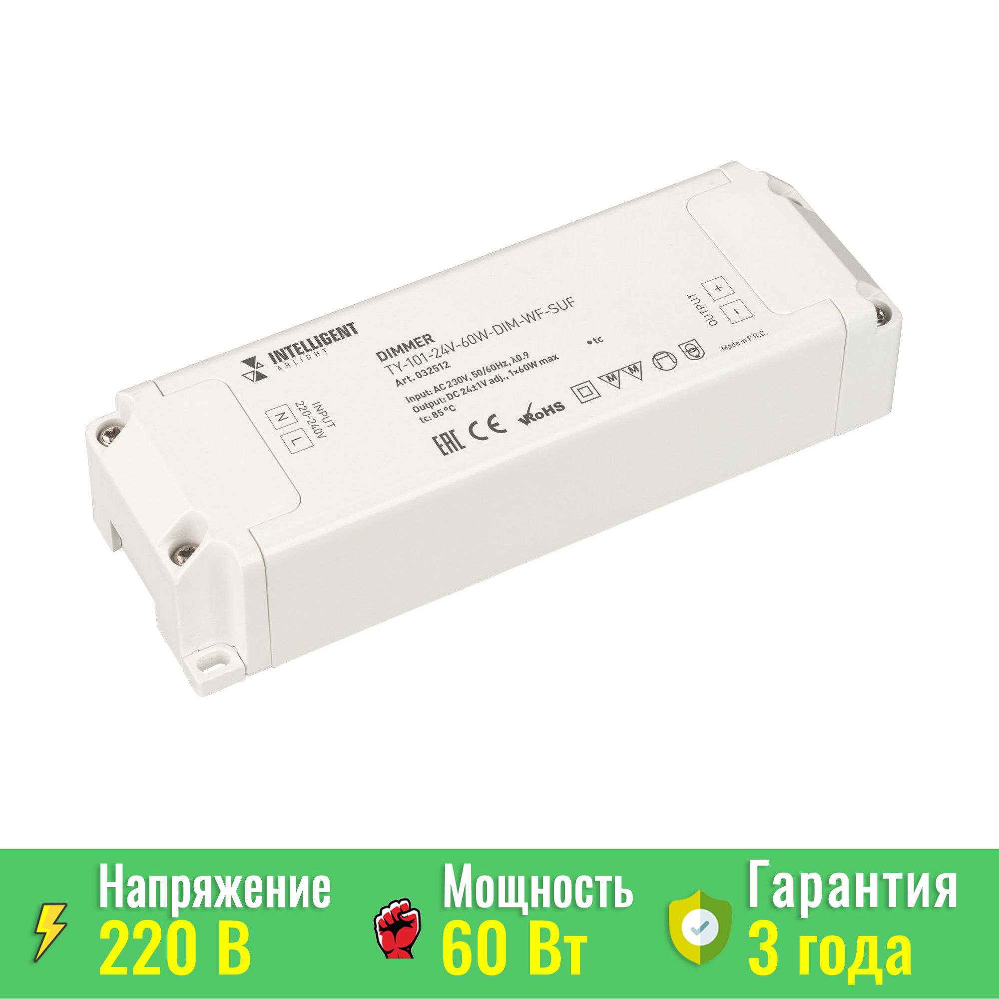 INTELLIGENT ARLIGHT Диммер TY-101-24V-60W-DIM-WF-SUF (230V, WIFI, 433MHz, 1х2.5A) (IARL, Пластик) Arlight 032512