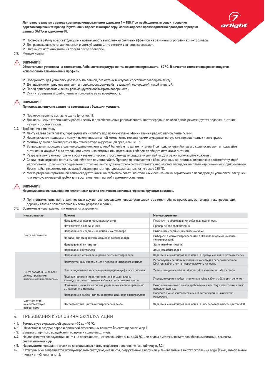 - Класс управления (прайс) 30 CH/m (10 пикселей RGB на 1 м)