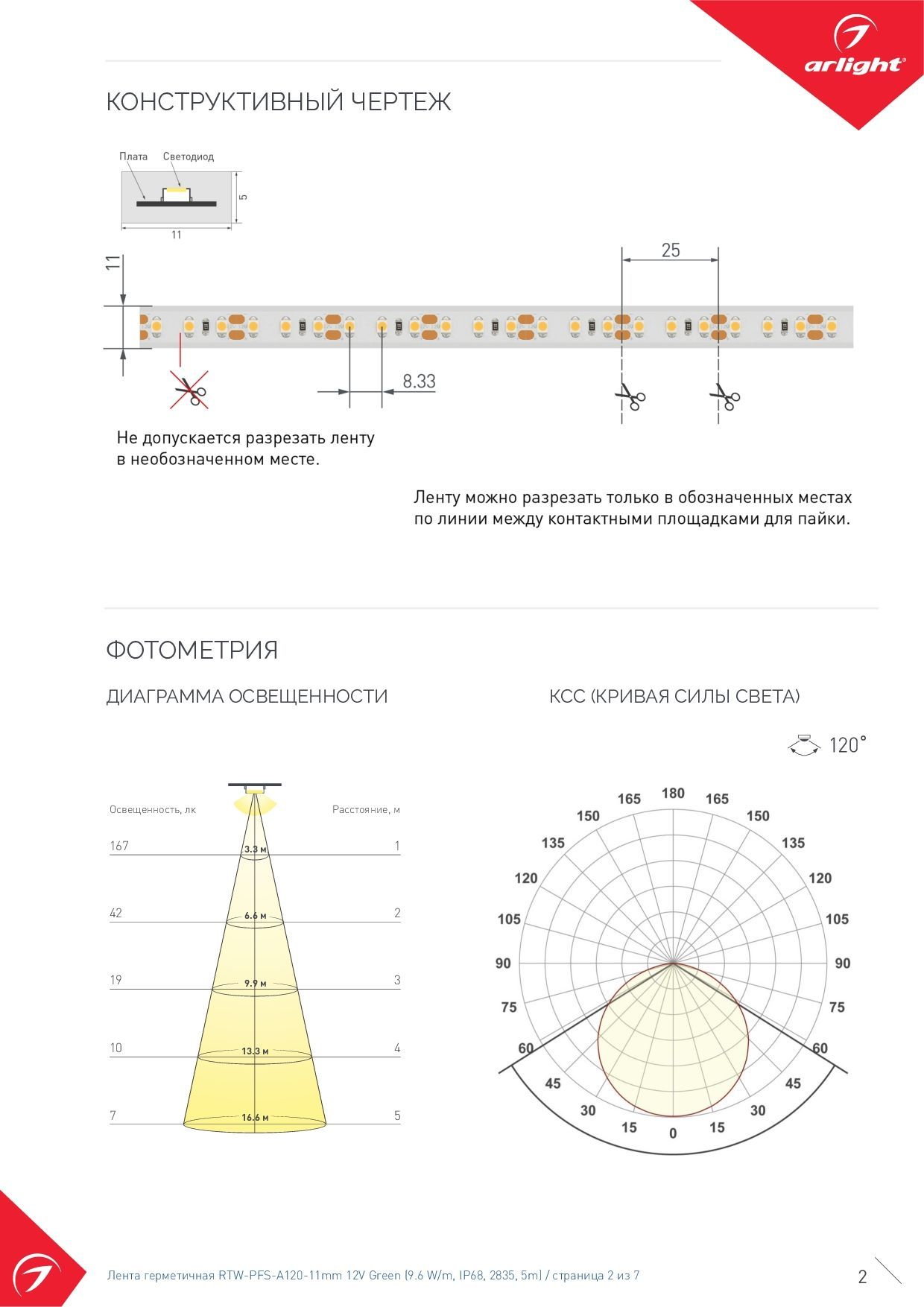 - Плотность светодиодов 120 шт/м