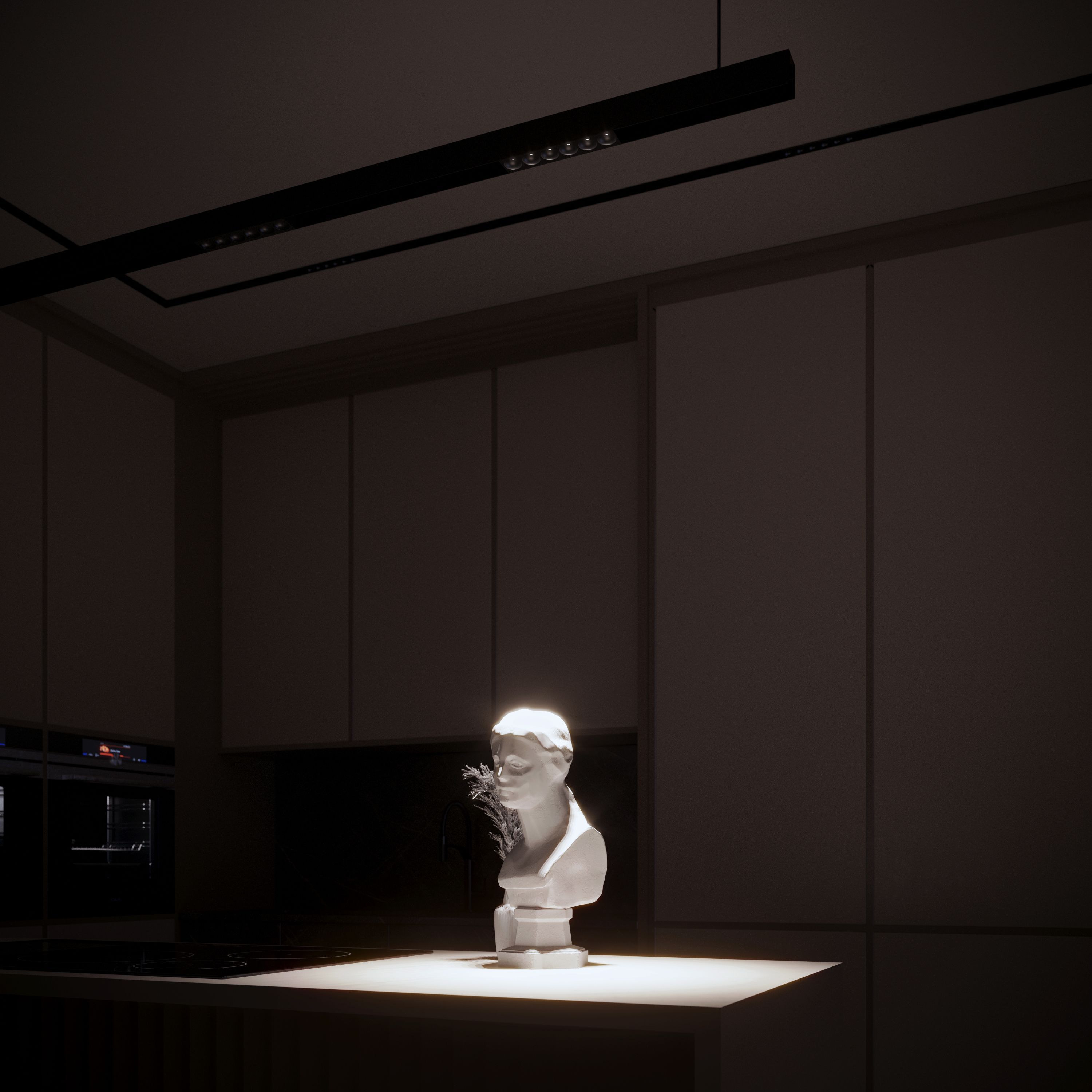 Одной из ключевых особенностей данного светильника является его способность создавать уникальный эффект освещения DARKLIGHT, известный как "свет из ниоткуда". Эта функция придаёт интерьеру особую атмосферу, а также позволяет скрыто устанавливать источники света.