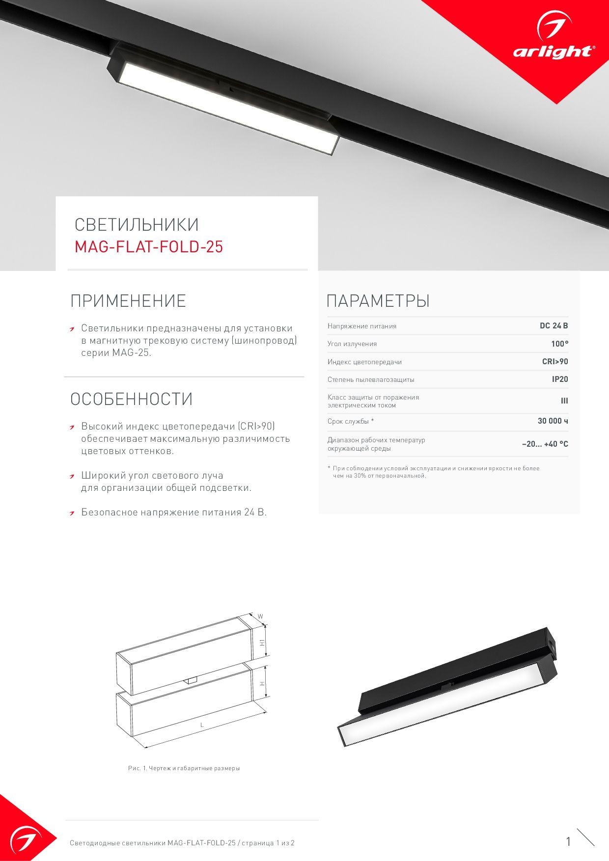 Светильник MAG-FLAT-FOLD-25-S1004-30W Day4000 (BK, 100 deg, 24V) (Arlight, IP20 Металл) Arlight 034243