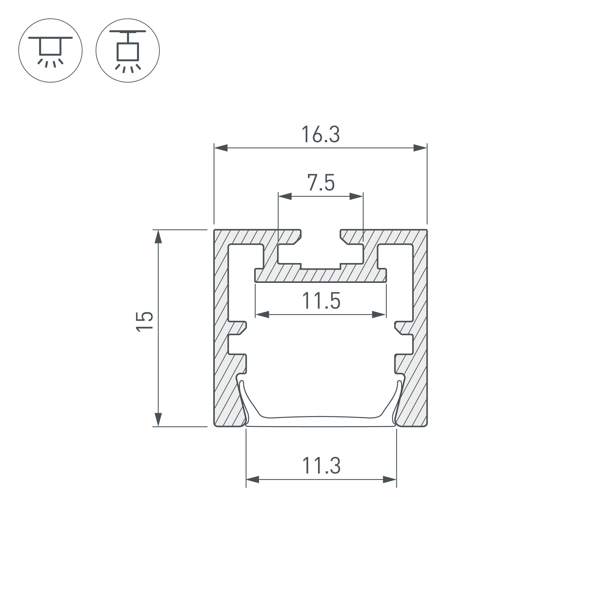 - Габариты: Длина профиля составляет 2000 мм, ширина — 16,3 мм, а высота — 15 мм. Это обеспечивает удобство в установке и интеграции в любой интерьер.