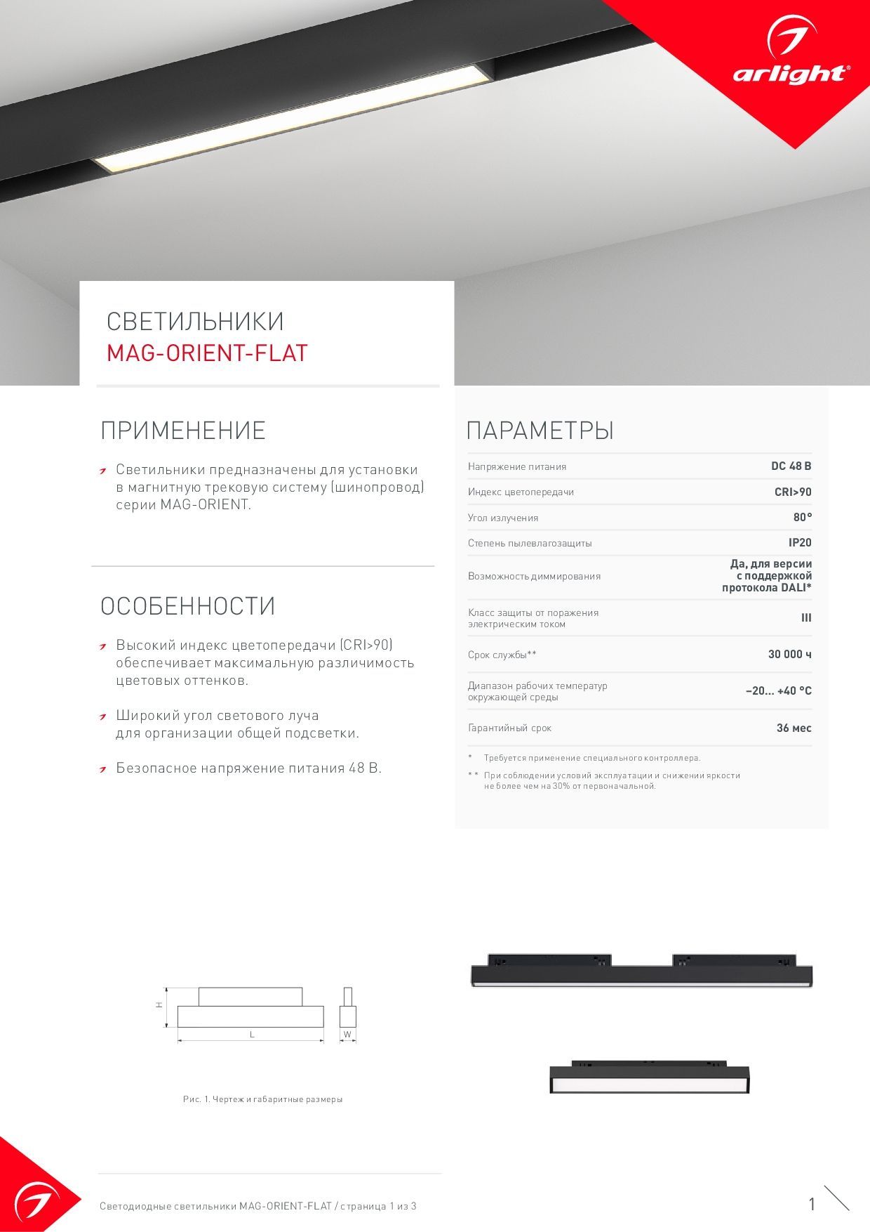 Светильник MAG-ORIENT-FLAT-L235-8W Warm3000 (WH, 80 deg, 48V, DALI) (Arlight, IP20 Металл) Arlight 035835