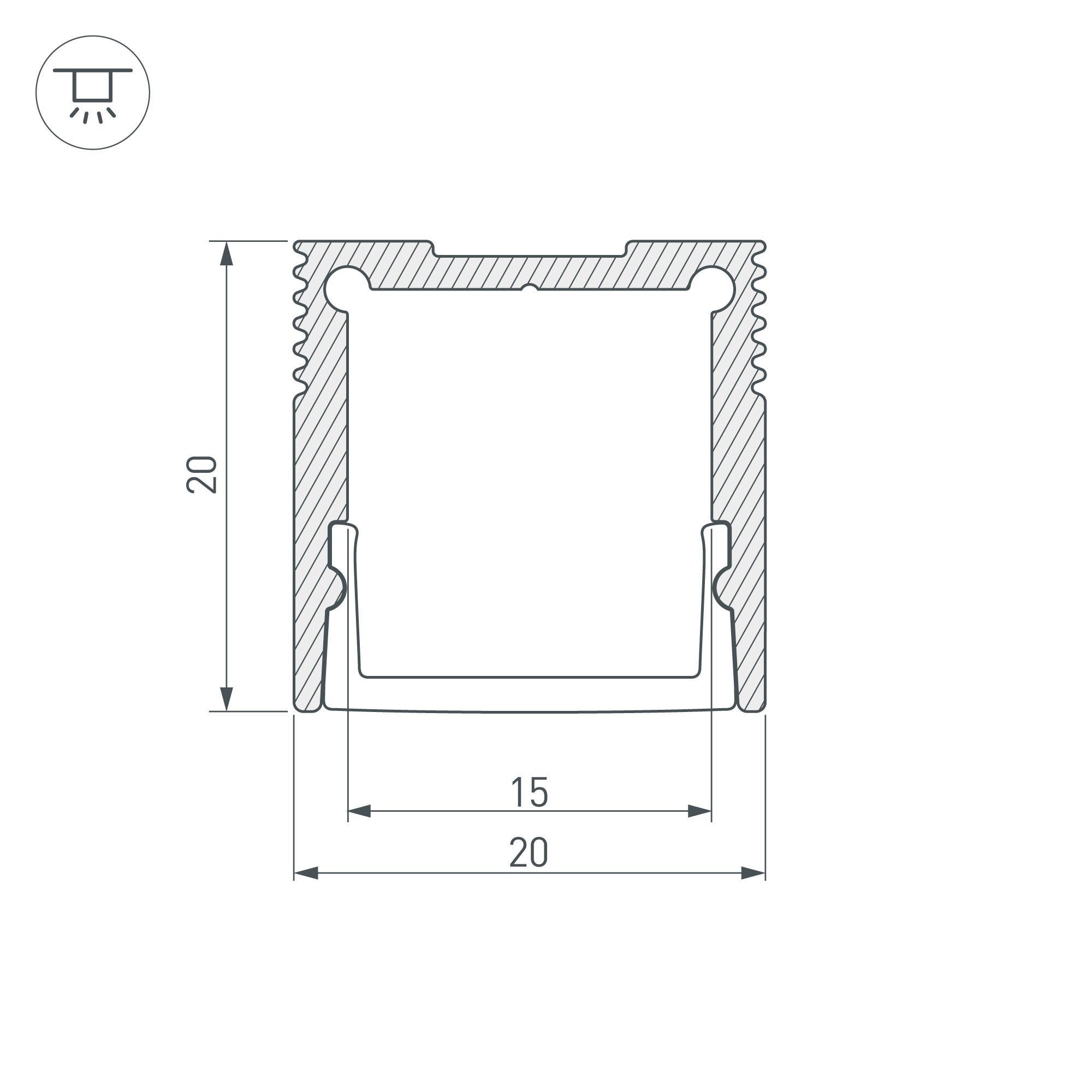 - Размеры: Габариты профиля составляют 3000 мм в длину, 20 мм в ширину и 20 мм в высоту. Ширина встроенной площадки для установки светодиодной ленты равна 15 мм, обеспечивая надежное крепление и оптимальную световую отдачу.