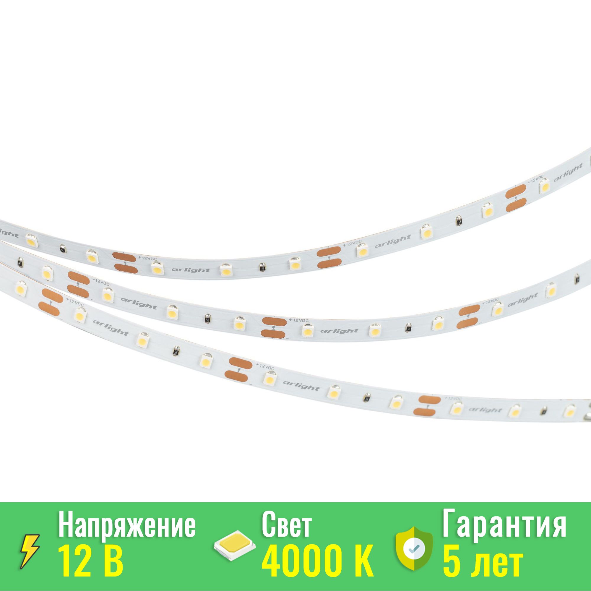 Светодиодная лента Arlight NT-A60-8mm 12V Day4000(4.8 W/m, IP20, 3528, 5m) (Arlight, Открытый) (Arlight 036156)
