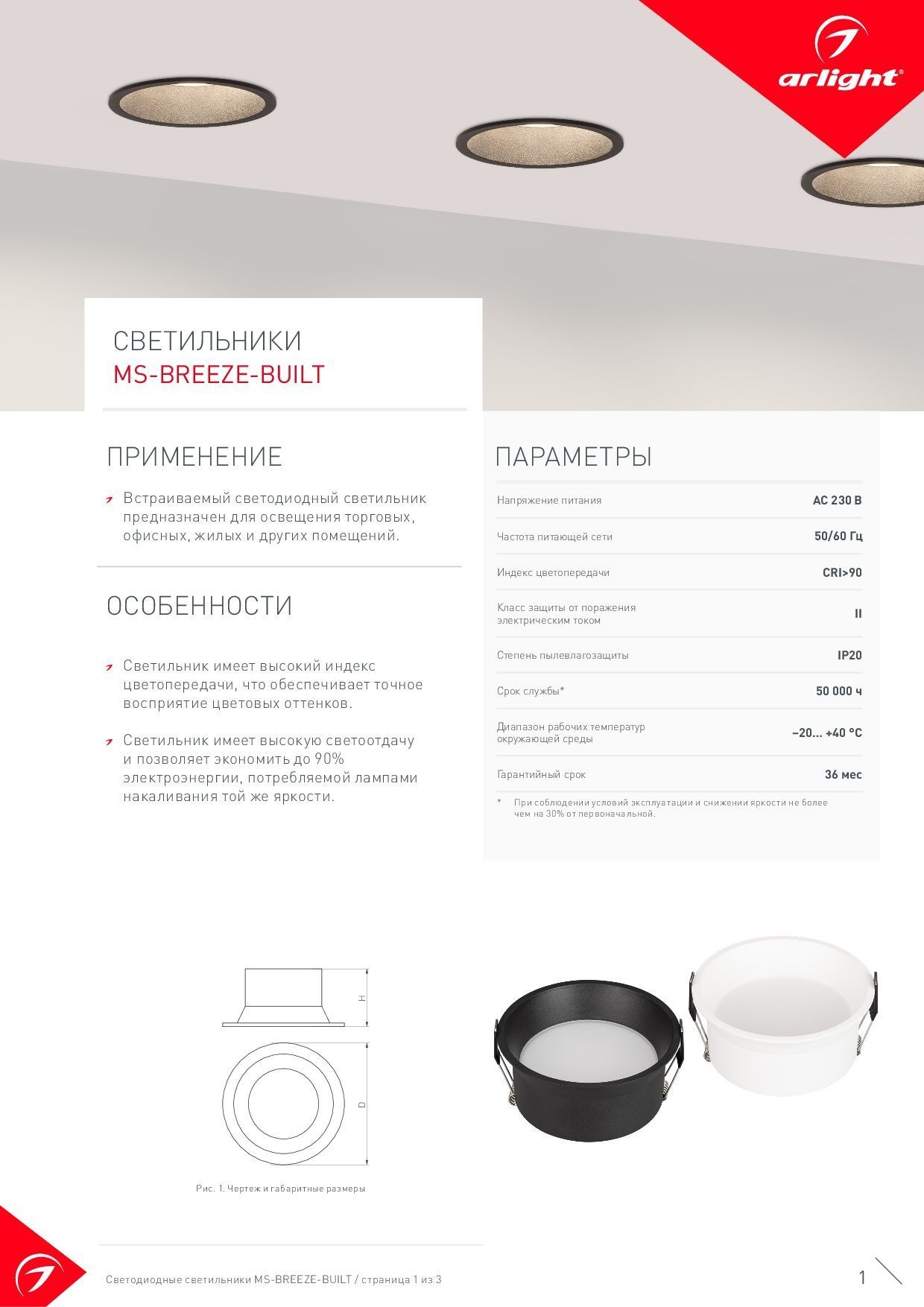 Светильник MS-BREEZE-BUILT-R104-12W Warm3000 (BK, 85 deg, 230V) (Arlight, IP20 Металл) Arlight 036621