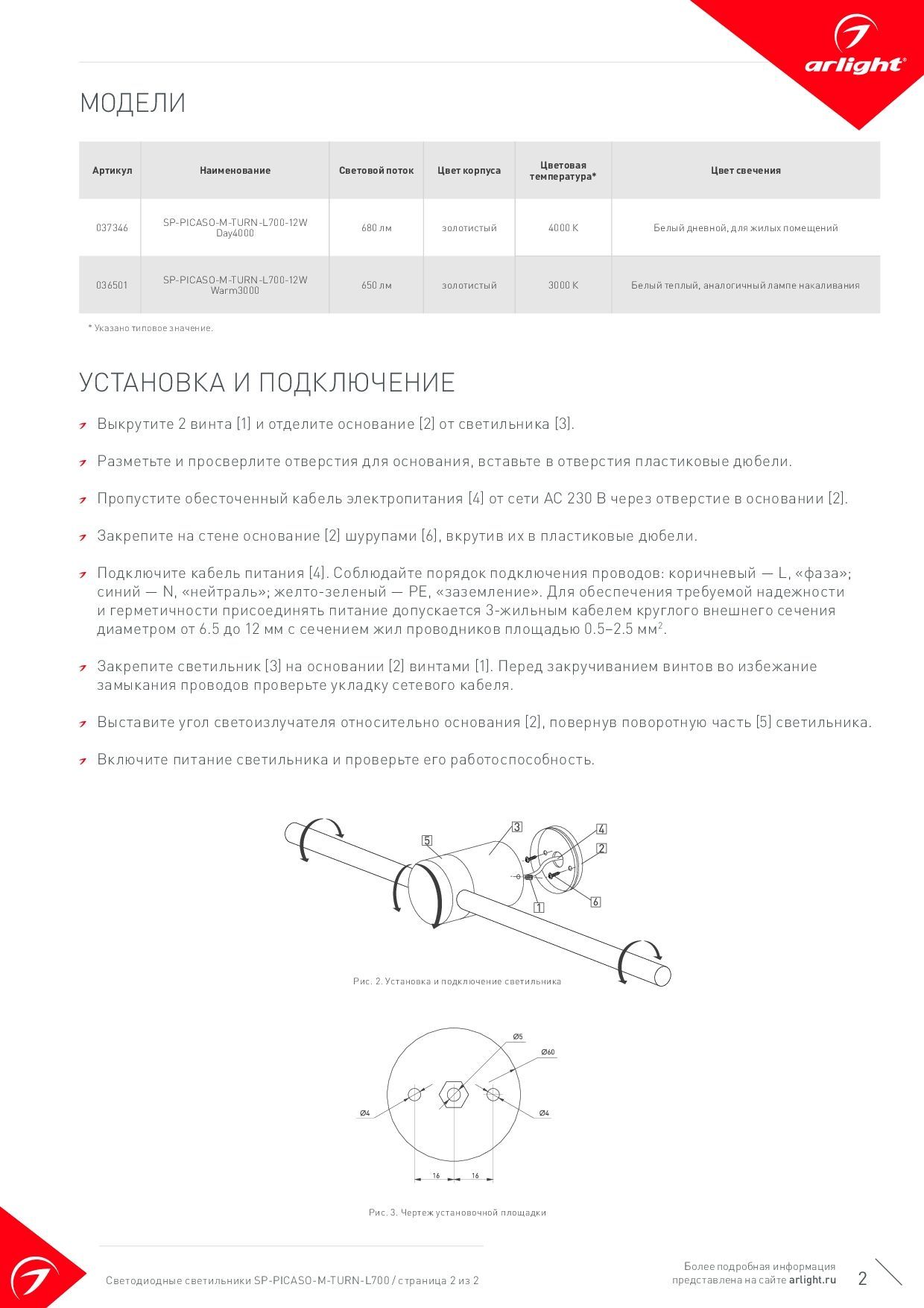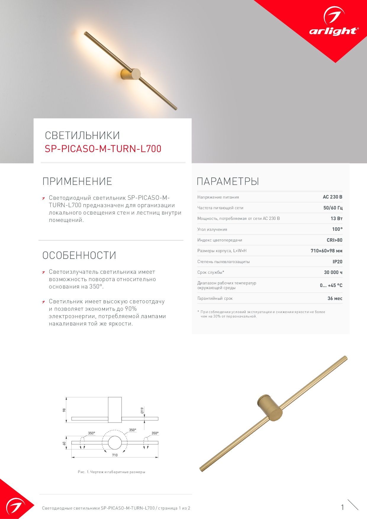 Светильник SP-PICASO-M-TURN-L700-12W Day4000 (GD, 100 deg, 230V) (Arlight, IP20 Металл) Arlight 037346