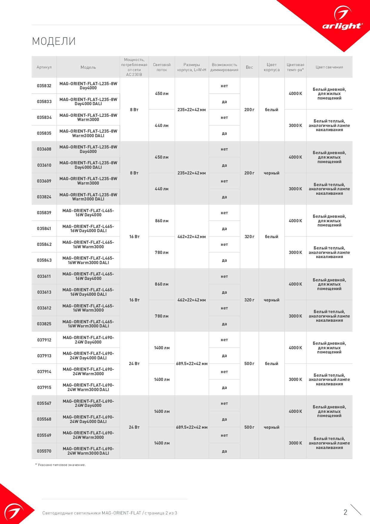 Светильник MAG-ORIENT-FLAT-L690-24W Warm3000 (WH, 80 deg, 48V) (Arlight, IP20 Металл) Arlight 037914