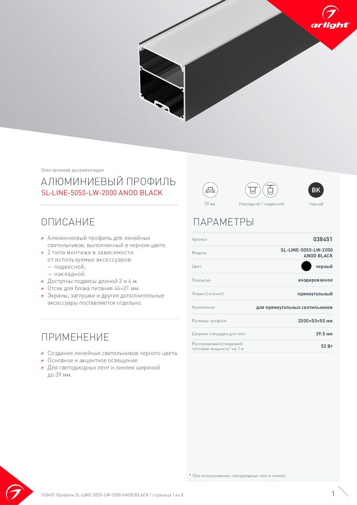 038451 Профиль SL-LINE-5050-LW-2000 ANOD BLACK (Arlight, Алюминий)