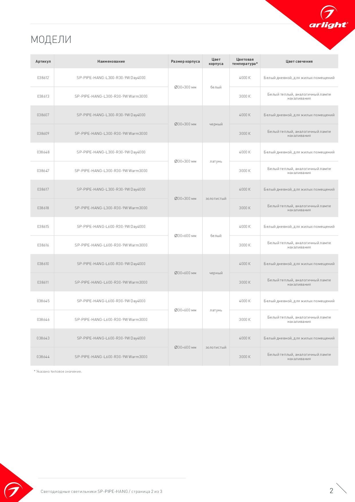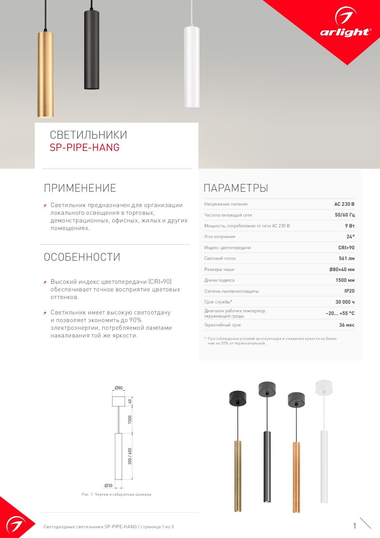 Светильник SP-PIPE-HANG-L600-R30-9W Day4000 (WH, 24 deg, 230V) (Arlight, IP20 Металл) Arlight 038615