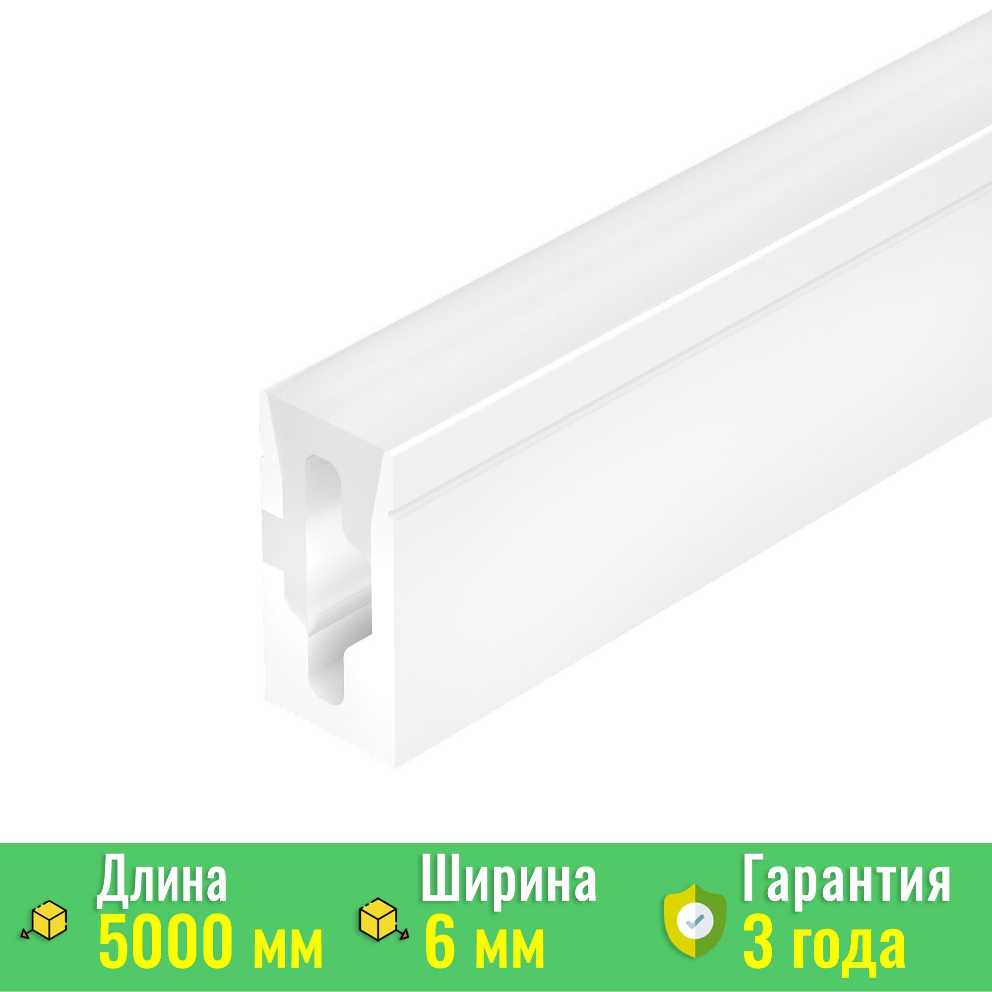 Профиль изготовлен из высококачественного силикона белого матового цвета с защитой от ультрафиолетового излучения, что предотвращает пожелтение материала и обеспечивает долгий срок службы. Благодаря цельнолитой конструкции профиль обладает отличными эксплуатационными характеристиками и повышенной прочностью.