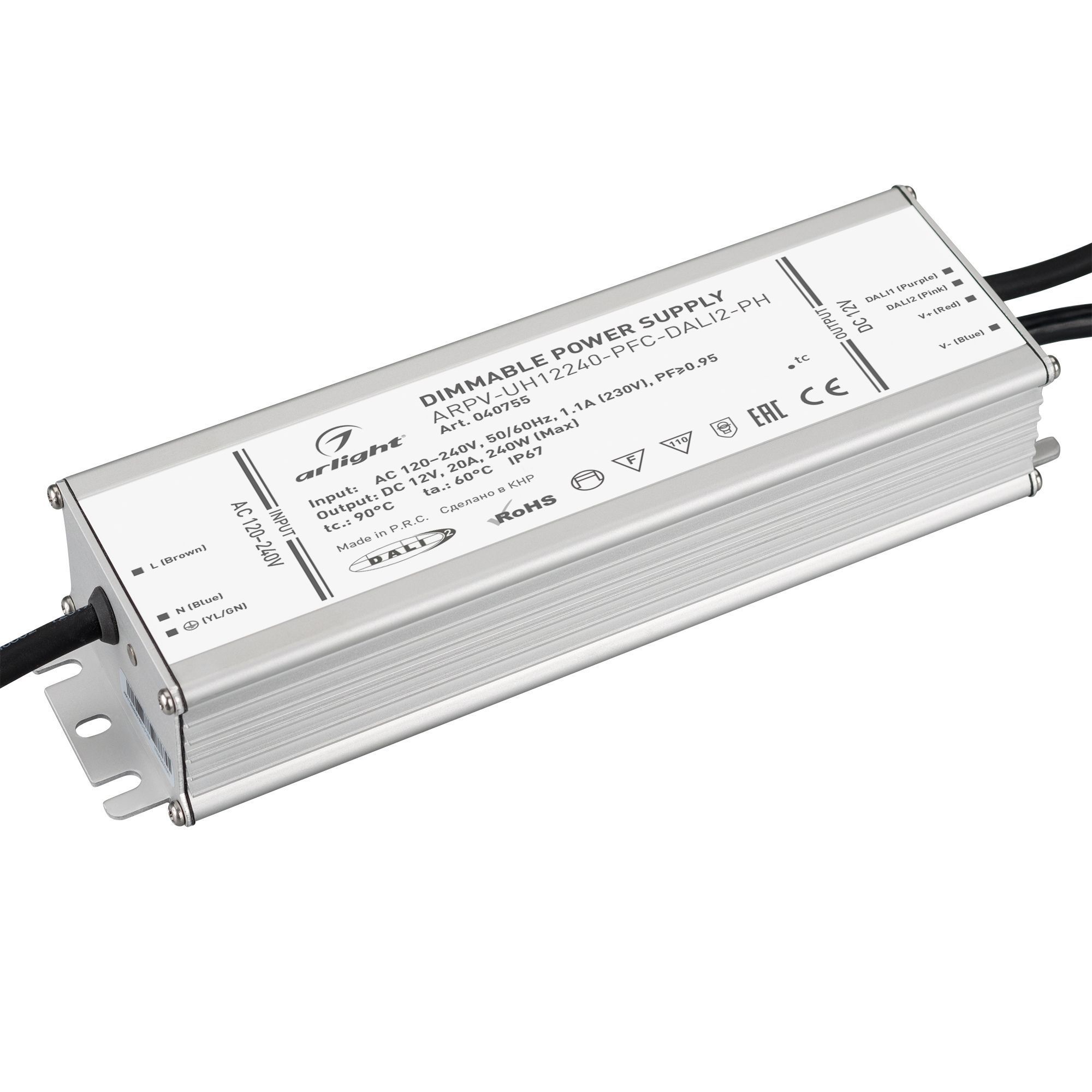 040755 Блок питания ARPV-UH12240-PFC-DALI2-PH (12V, 20A, 240W) (Arlight, IP67 Металл, 7 лет)