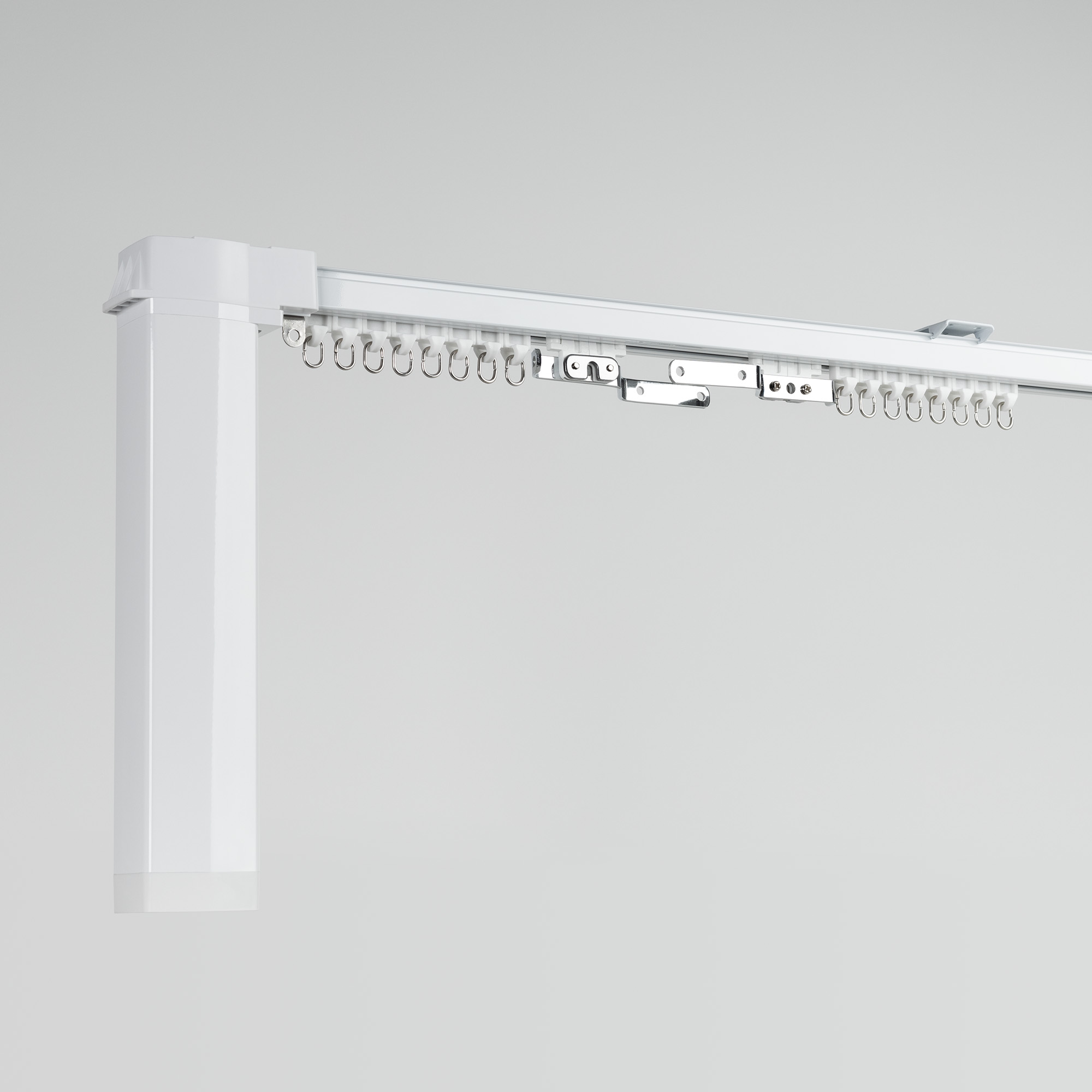Электропривод работает от сети с переменным током напряжением от 100 до 240 Вольт. Потребление тока составляет максимум 0,14 Ампер. Карниз обеспечивает безопасность и долгий срок службы, с классом защиты от пыли и влаги IP20. При создании конструкции использованы высококачественные материалы, включая металлический корпус с прочным белым покрытием.