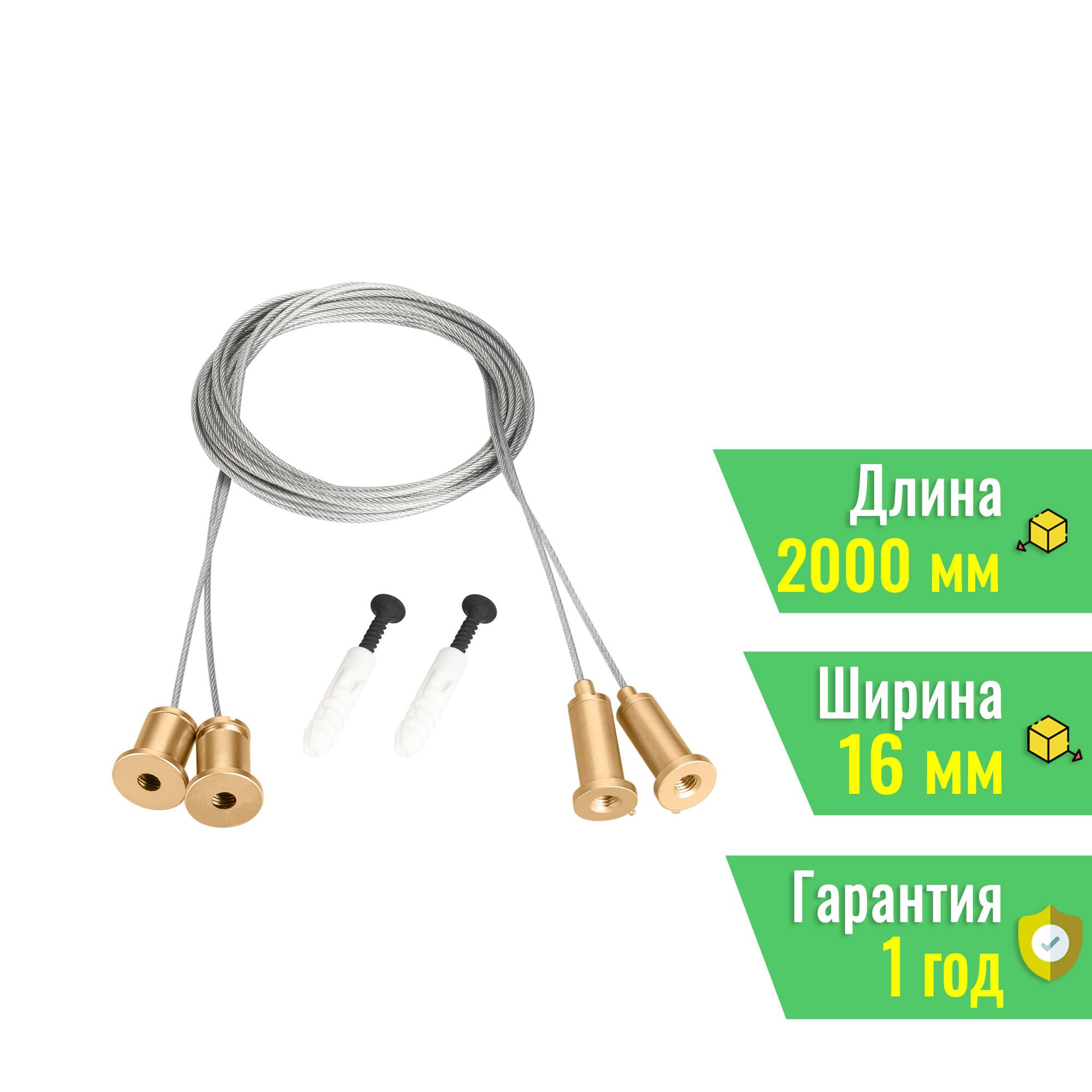 - Длина тросов составляет 2000 мм, что дает возможность адаптации под различные высоты потолков.